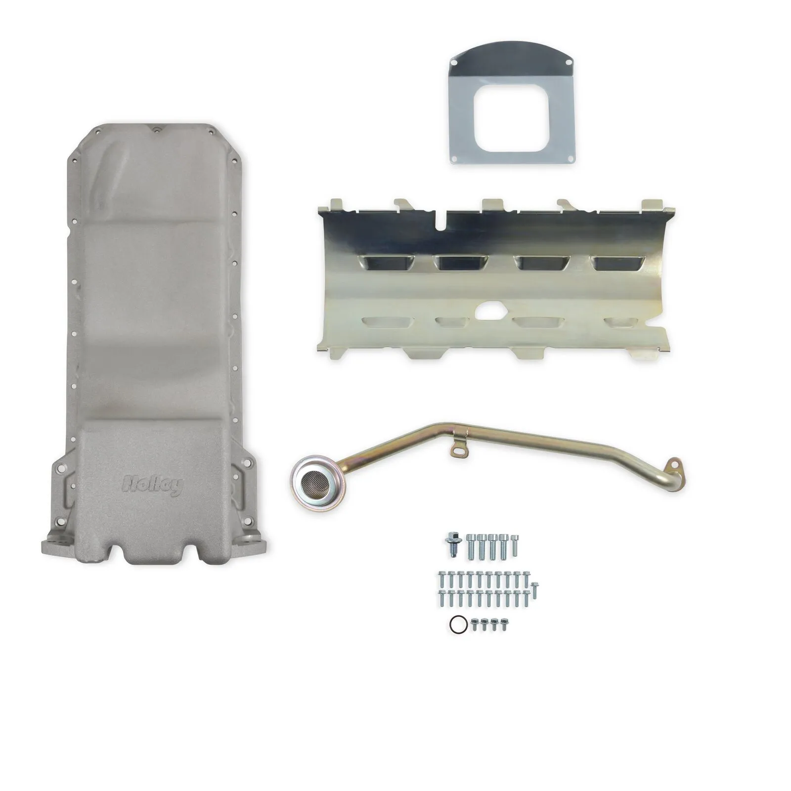 - Complete oil pan kit with includes the oil pan, pickup assembly, O-ring seal, windage tray, baffling & mounting bolts no extras that must be purchased separately