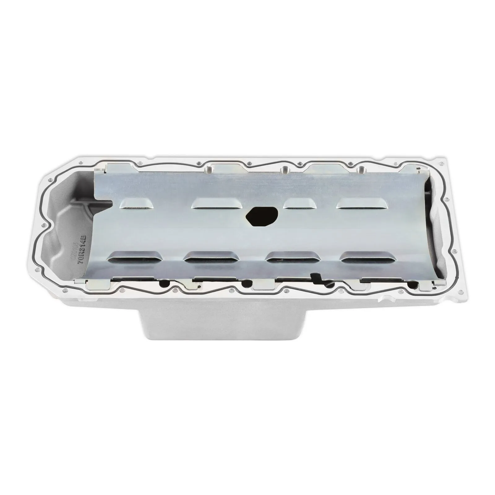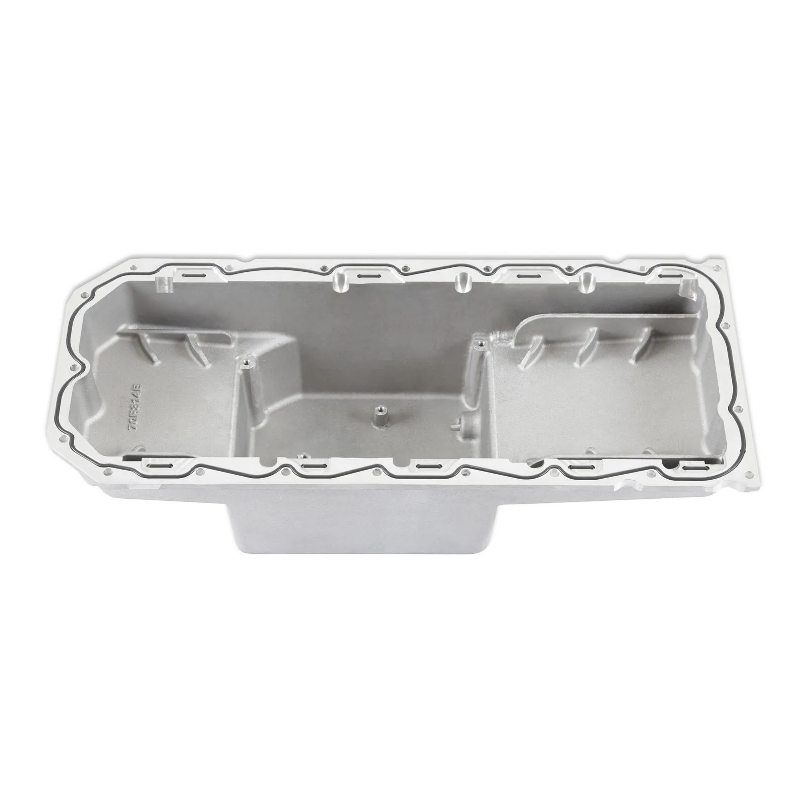 The cast aluminum construction & integrated windage tray on the oil pans combined with O-ring sealing provide an attractive leak-free solution for your engine swap. Complete oil pan kit that includes all the parts needed for installation (i.e., oil pan, pickup assembly, O-ring seal, windage tray, baffling & mounting bolts).