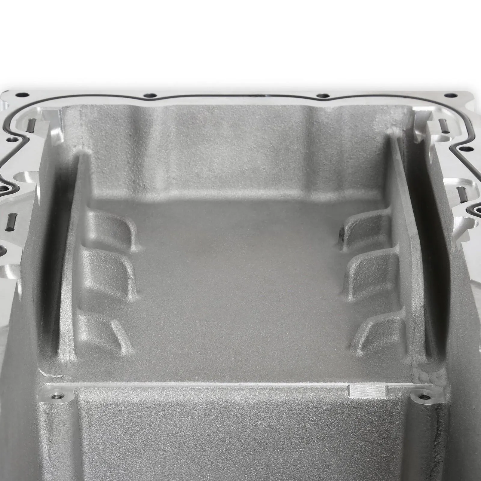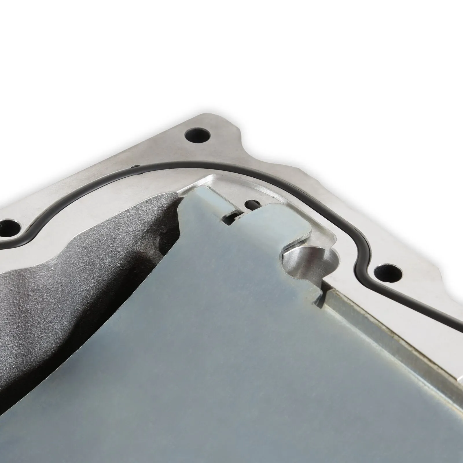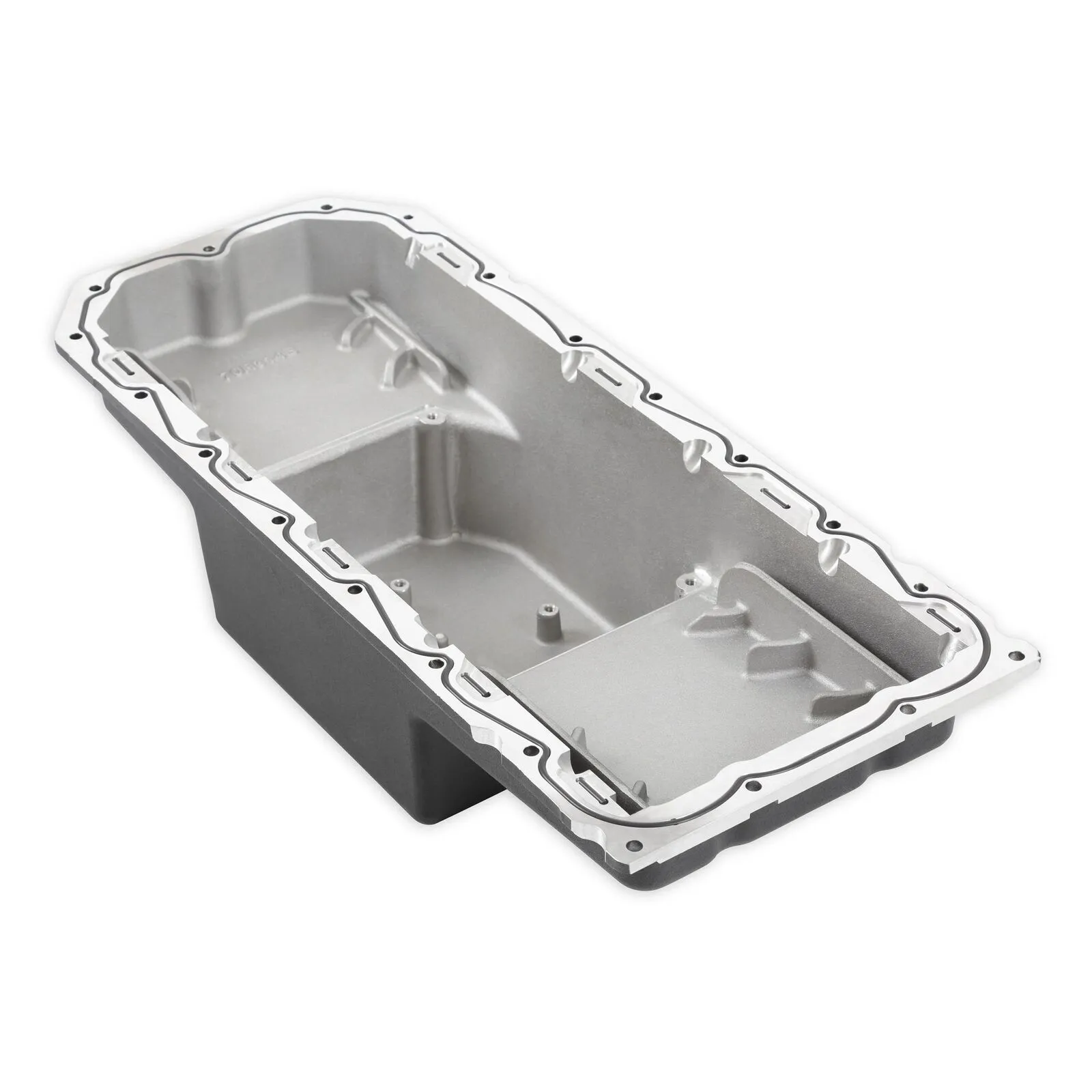 The cast aluminum construction & integrated windage tray on the oil pans combined with O-ring sealing provide an attractive leak-free solution for your engine swap. Complete oil pan kit that includes all the parts needed for installation (i.e., oil pan, pickup assembly, O-ring seal, windage tray, baffling & mounting bolts).