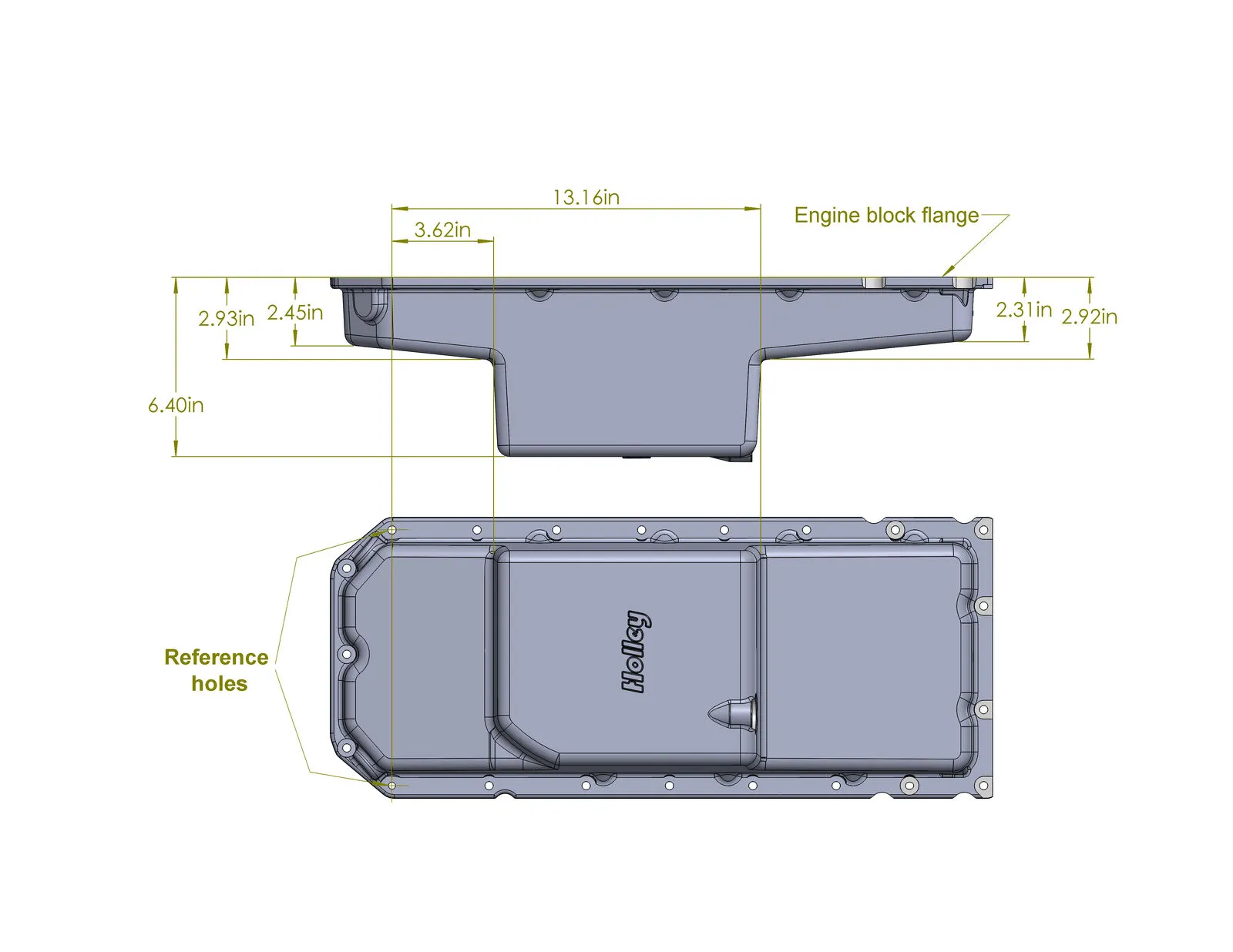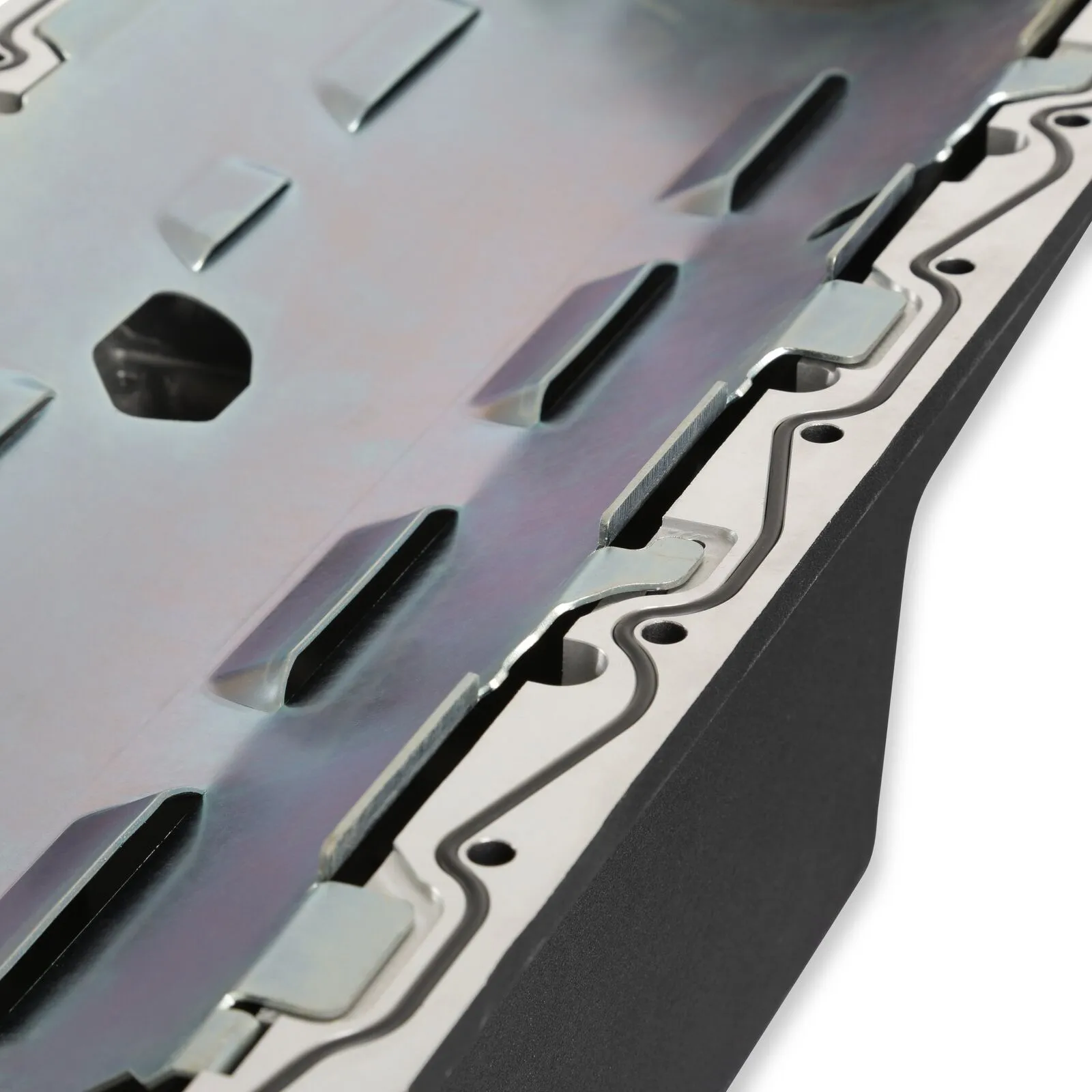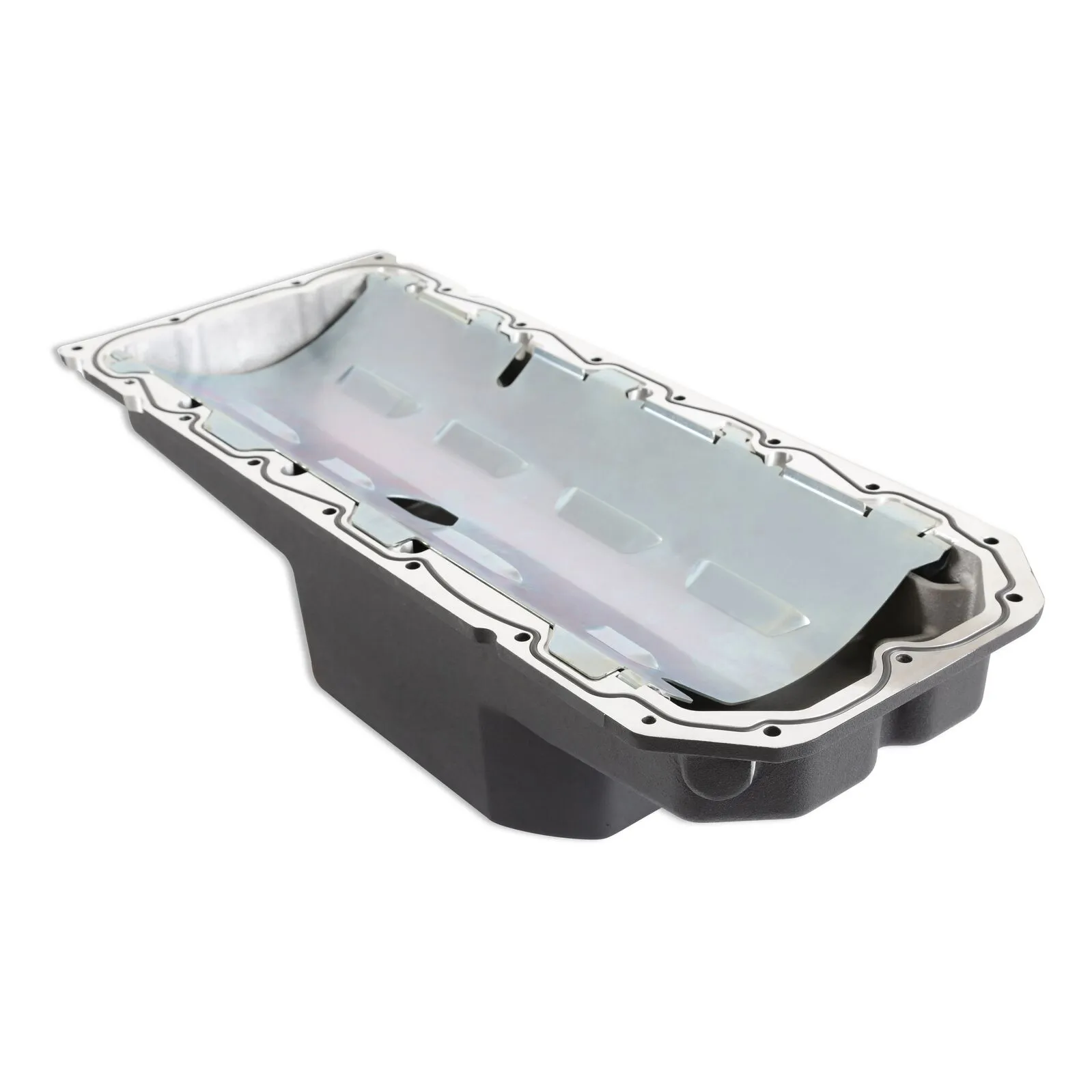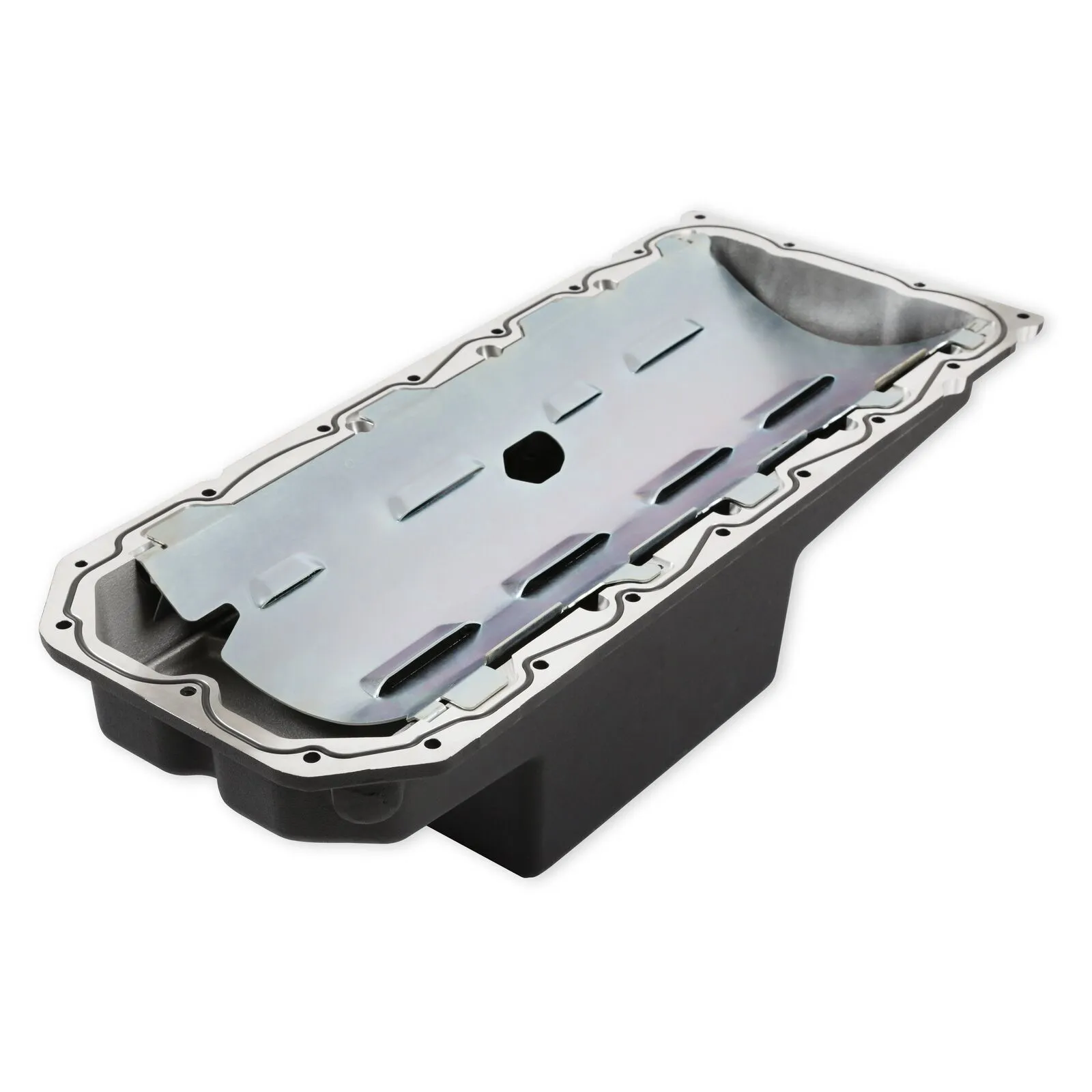 The cast aluminum construction & integrated windage tray on the oil pans combined with O-ring sealing provide an attractive leak-free solution for your engine swap. Complete oil pan kit that includes all the parts needed for installation (i.e., oil pan, pickup assembly, O-ring seal, windage tray, baffling & mounting bolts).