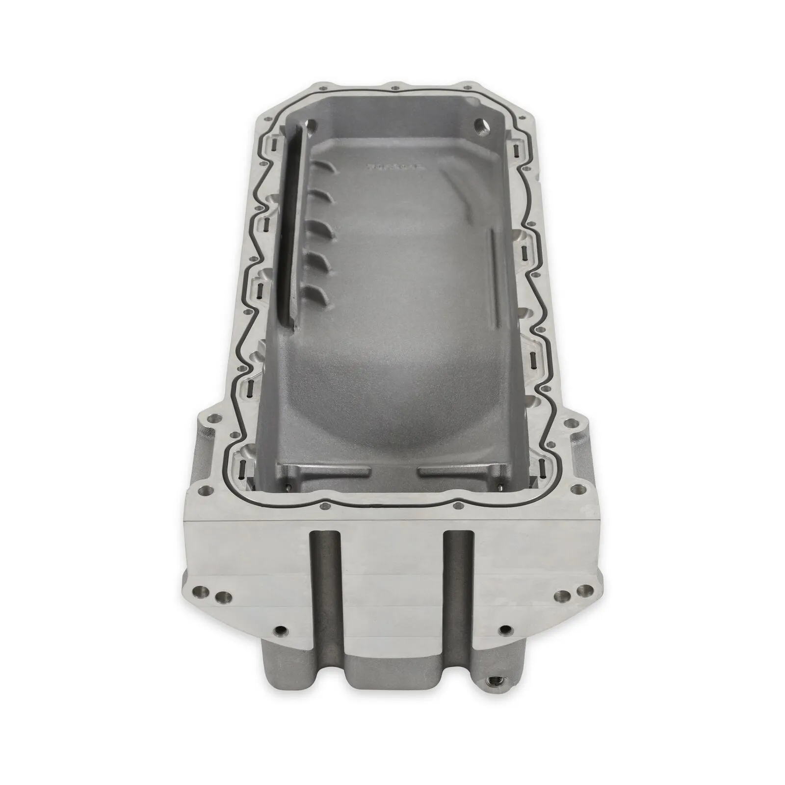 The cast aluminum construction & integrated windage tray on the oil pans combined with o-ring sealing provide an attractive leak-free solution for your engine swap. Complete oil pan kit that includes all the parts needed for installation (i.e., oil pan, pickup assembly, o-ring seal, windage tray, baffling & mounting bolts).