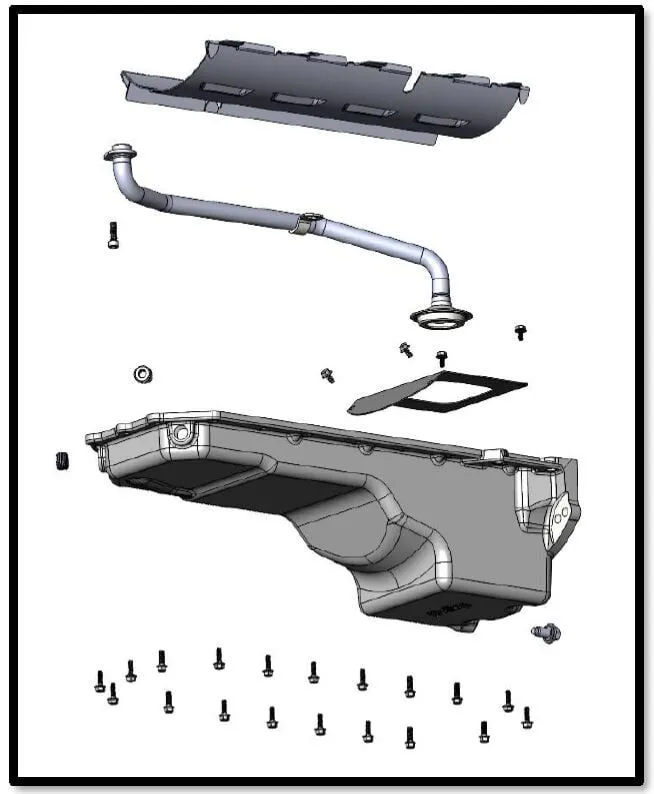 - Complete oil pan kit with includes the oil pan, pickup assembly, O-ring seal, windage tray, baffling & mounting bolts no extras that must be purchased separately