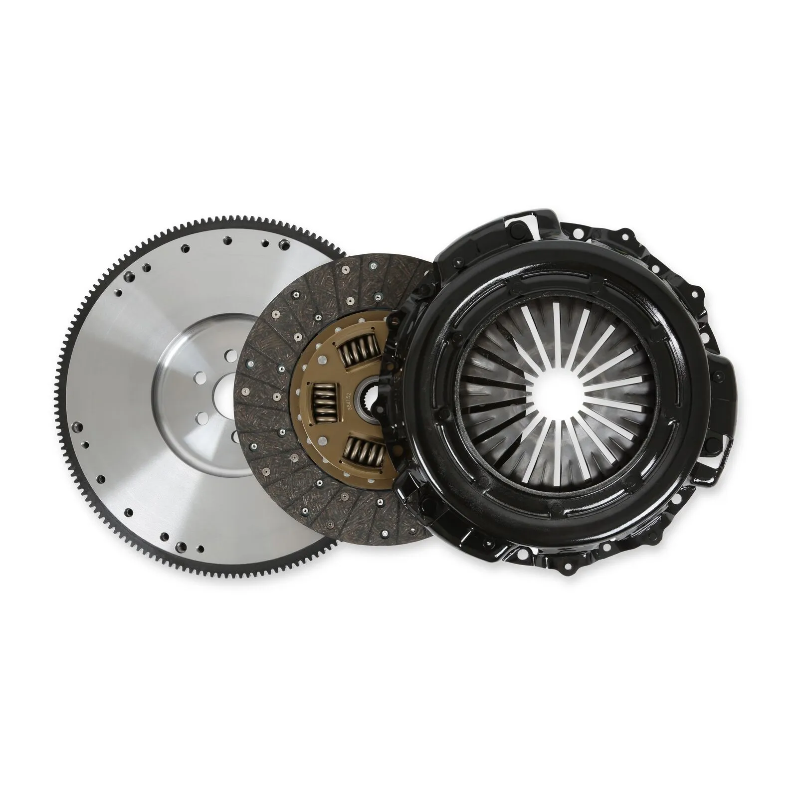 These Holley Transmission Installation Kits come complete with everything you need to bolt a TKX or TKO transmission to a 28-ounce externally balanced small-block Ford engine. Built with a mixture of our best brands including Lakewood, Hays and Mr Gasket. Kits include: A roller pilot bearing, bellhousing with dust shield, billet steel flywheel, clutch and pressure plate, hydraulic release bearing, and all hardware needed to install these components.