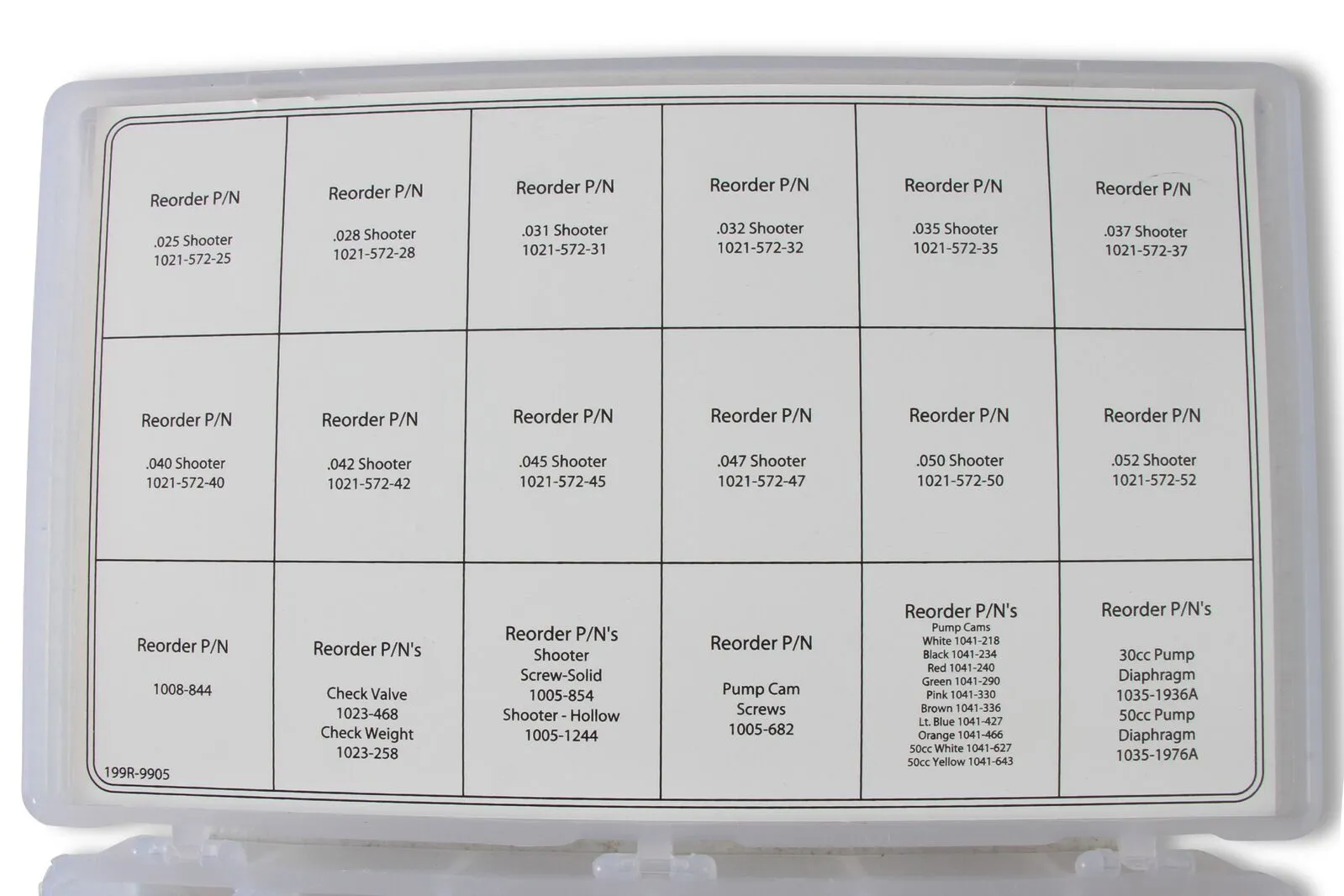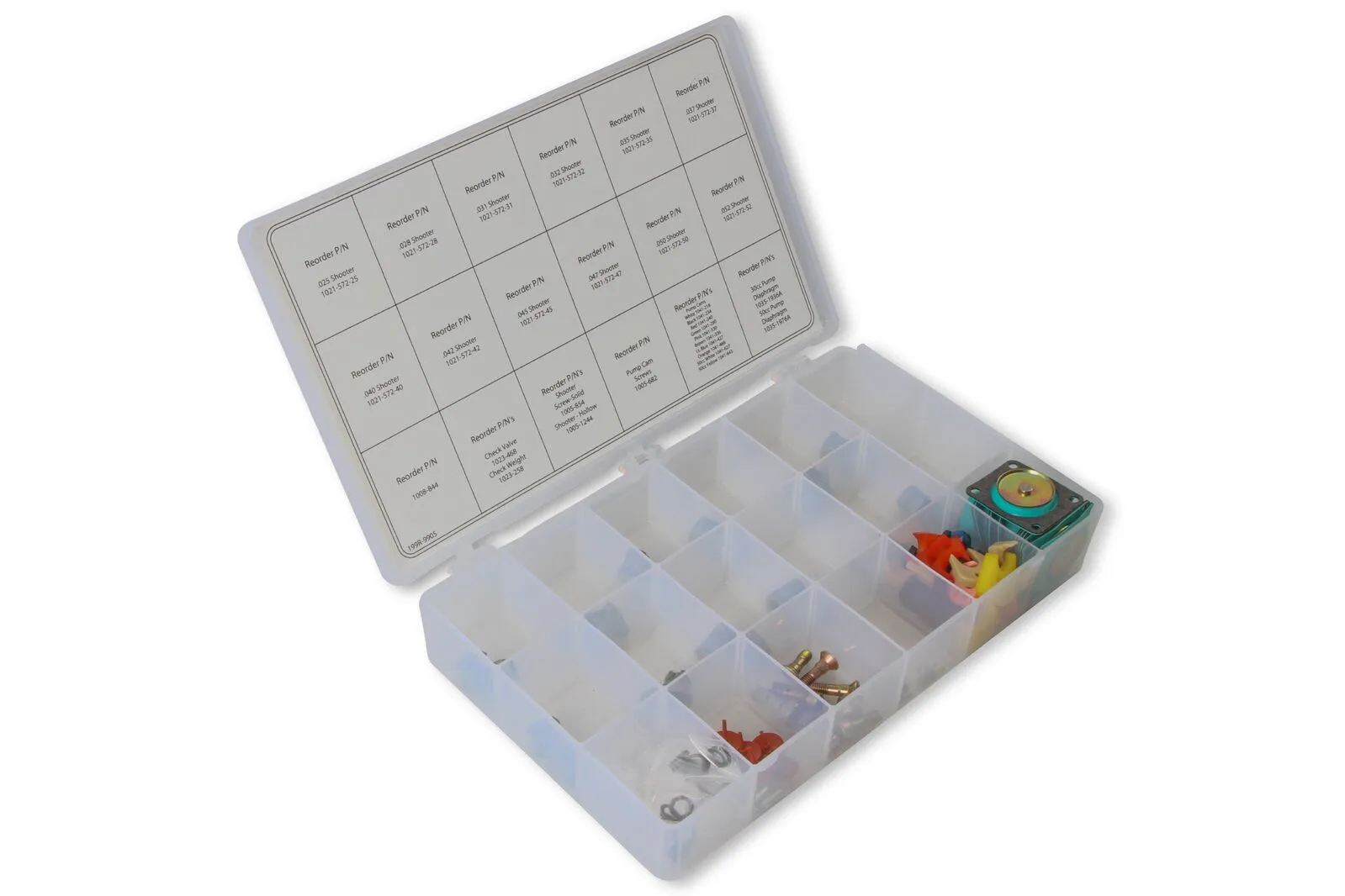 This tuning kit is composed of a selection of accelerator pump hardware components including pump diaphragms, pump nozzles, pump cams and related parts. Contained in a convenient plastic parts case, this kit has all that is required to properly tune and calibrate the accelerator pump circuit(s) for your street, drag or circle track car or tow vehicle. A handy parts guide is affixed to the inside case cover to assist in reordering components when necessary.
