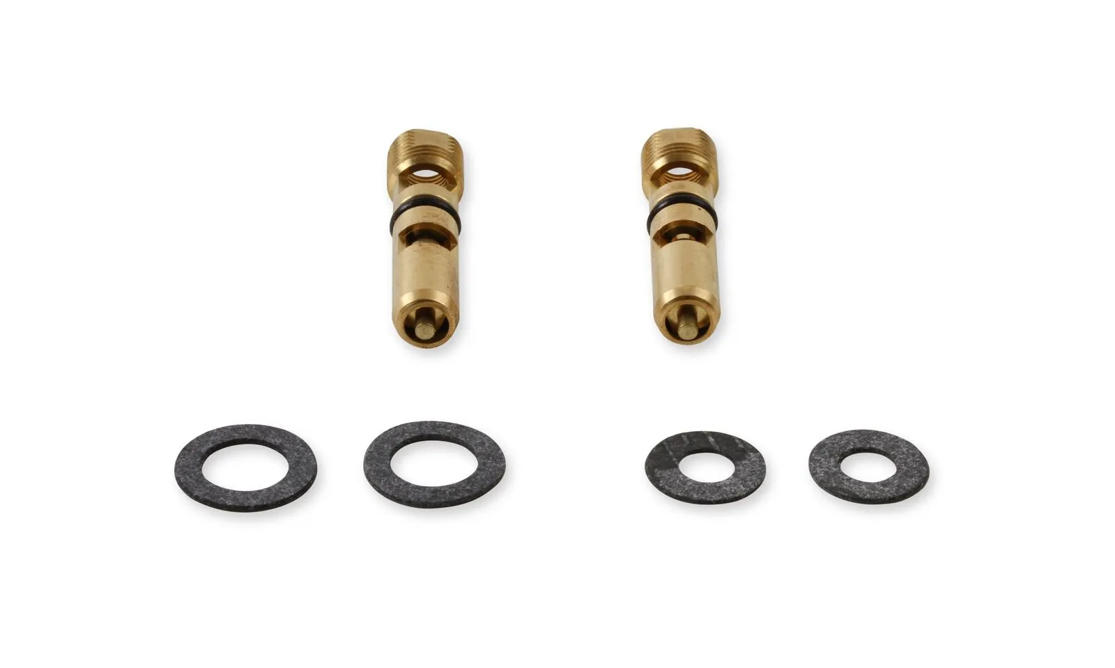 "Steel-tipped" inlet needles are necessary when using exotic racing fuels A .097" seat size should be used for small four barrel carburetors; a .110" seat size should be used for carburetors up to 735 CFM; larger seat sizes should be used with carburetors 750 CFM and larger. The following steel inlet needle and seat assemblies are available from Holley.
