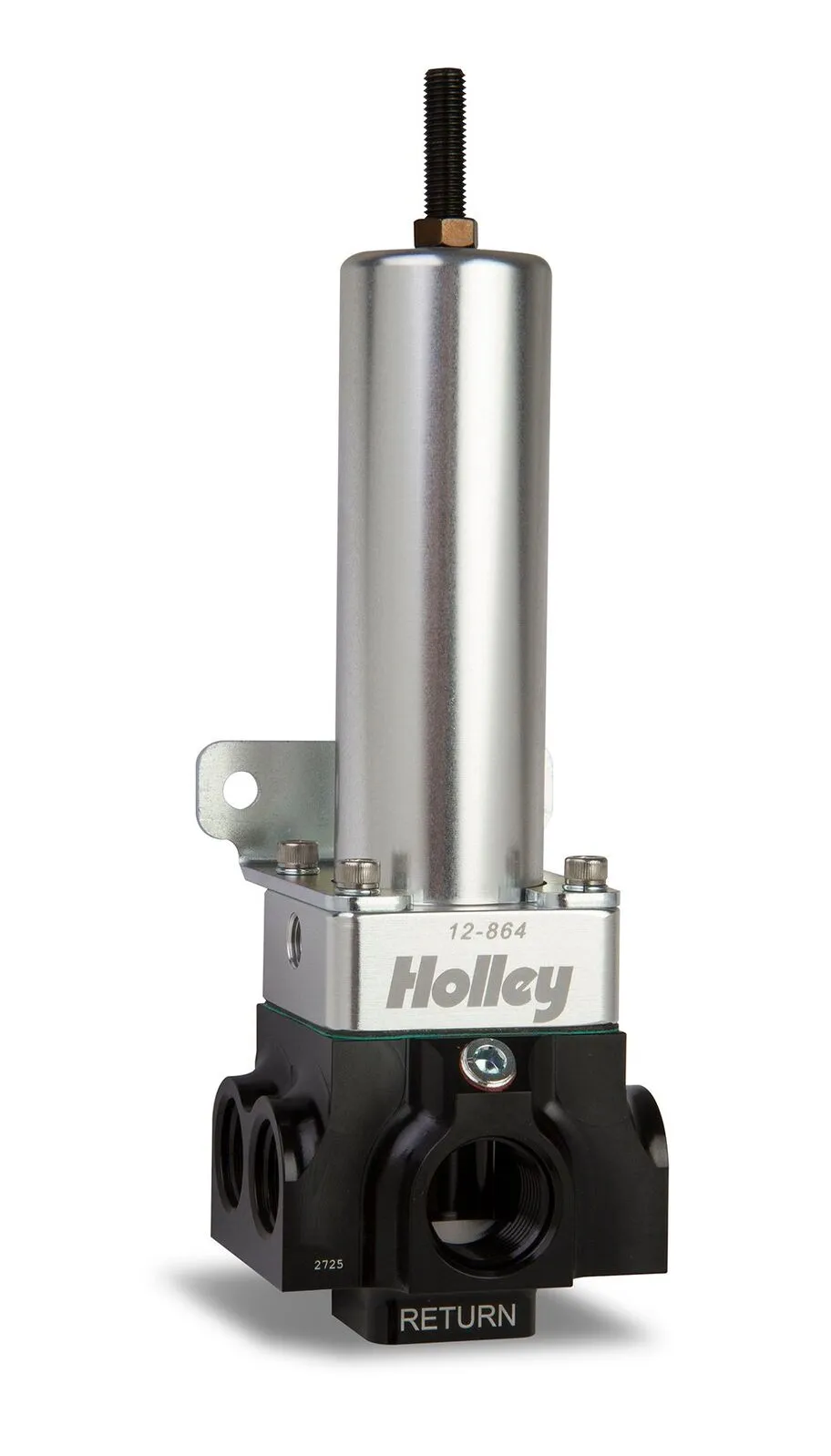 The Holley VR Series billet fuel pressure regulators are part of the VR1 and VR2 Series brushless fuel systems product line. These regulators can support 3000+ horsepower engines that require high volumes of fuel flow. Both EFI and carbureted versions can be referenced on a 1:1 ratio. They are precision machined from 6061-T6 billet aluminum for strength and durability and feature a black bright dip anodized body and a clear bright dip anodized top for corrosion resistance and good looks. Offered in 2 port and 4 port versions for carbureted or EFI pressures, Holley has the regulator to cover your needs!