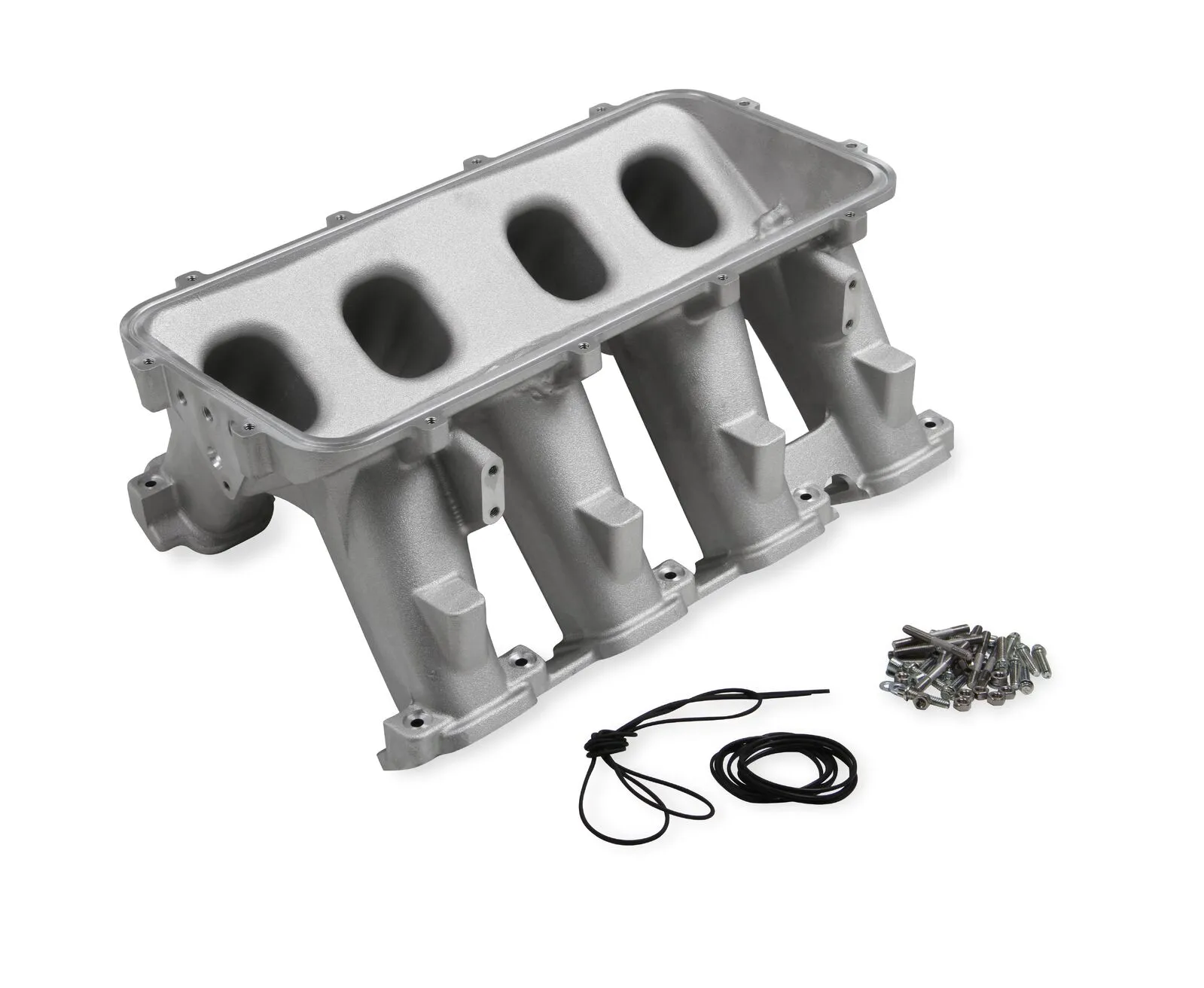 The new Holley EFI Hi-Ram intake provides the ultimate performance with the new GM direct injected Gen V 6.2L LT1 engine. The modular design of this manifold allows easy disassembly for custom porting, multiple tops, or custom induction systems. Each runner has a large radius where it meets the plenum, and optimized taper & cross-sectional area to perform in a wide variety of engine configurations. The optional injector bosses on the intake runners allow increased performance potential by using additional injectors along with the factory direct injection. When you look for the pinnacle of performance, price, and quality, look to Holley EFI.