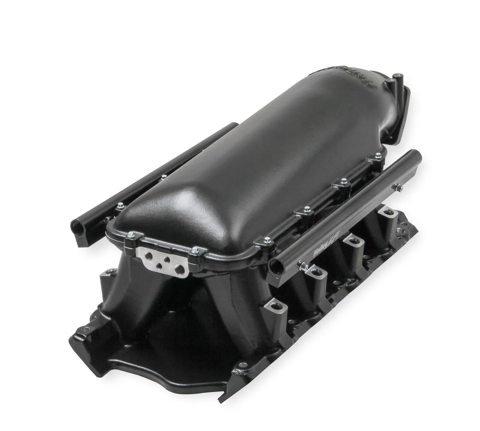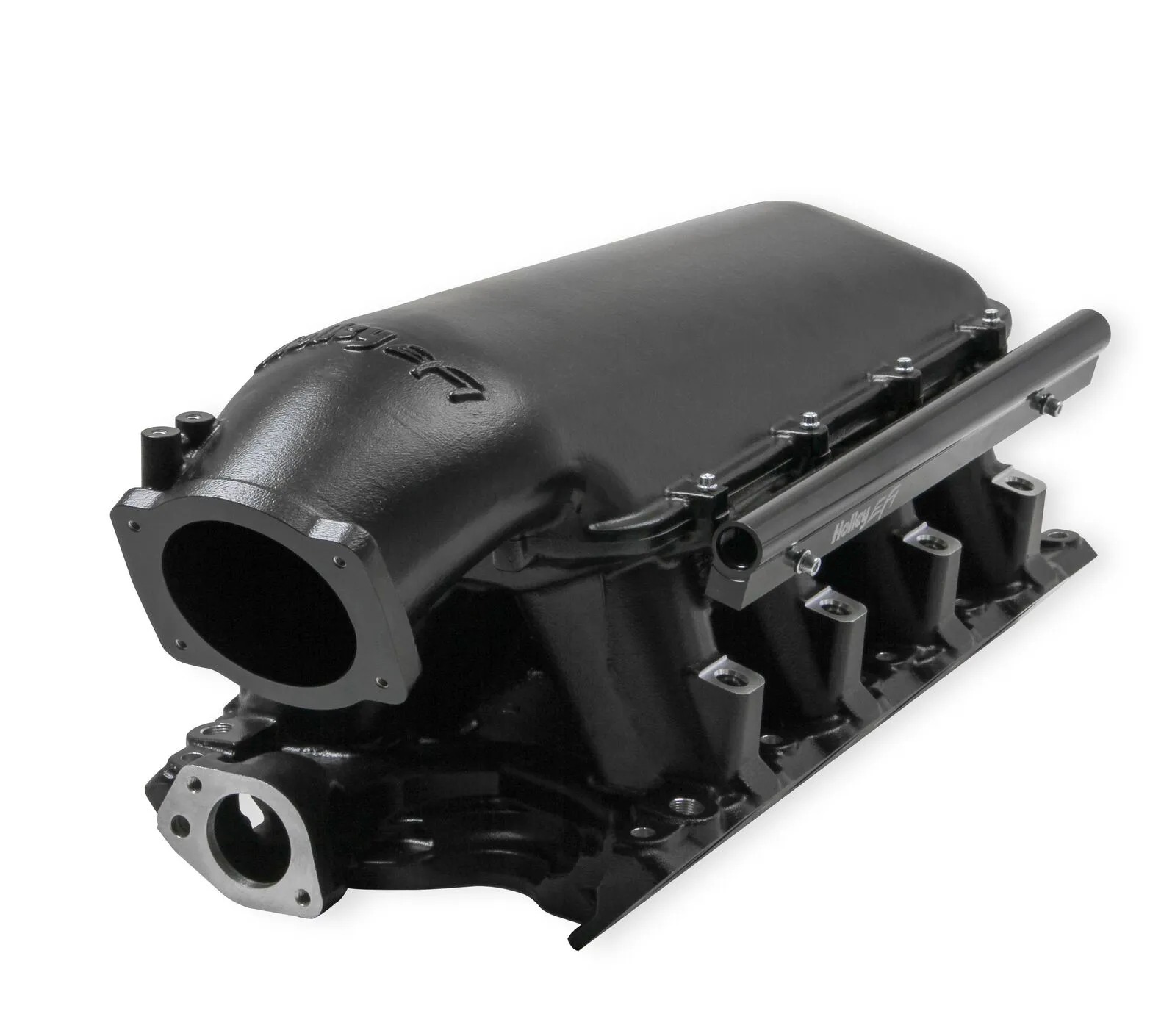 The EFI Hi-Ram manifold line has a new addition for the 351W Ford application. This manifold comes with a 95MM LS throttle body flange top, a 105mm LS throttle body top is also available. The runner length and tapered cross section design will perform well for a wide range of engine combinations. The engineering team also redesigned the water crossover passage to allow room for distributor phasing. Aggressive, bold, race-bred styling will make bad intentions clear for drag race, muscle car, marine, off-road, sandrails, pulling trucks, track, street-rod applications and more!