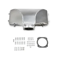 Fabricated aluminum construction designed to mount on our existing Hi-Ram manifold bases. Available in silver or black finish. Models for both LS and 86-95 Ford 5.0 Style throttle body patterns in 95mm and 105 mm sizes.