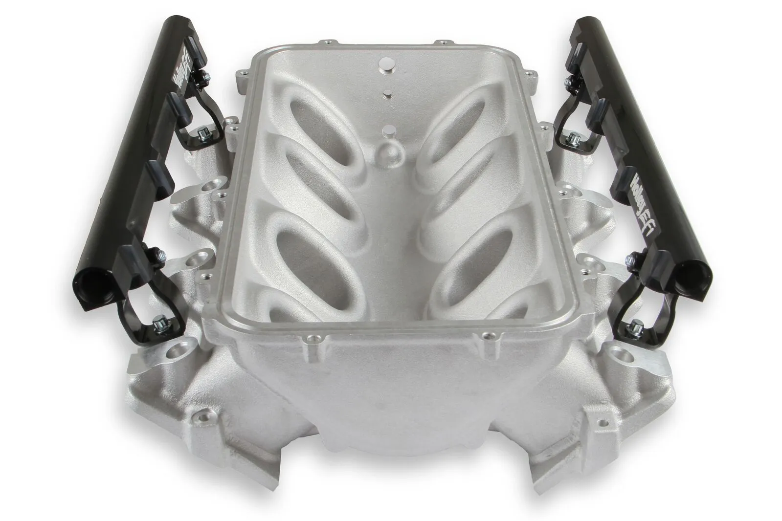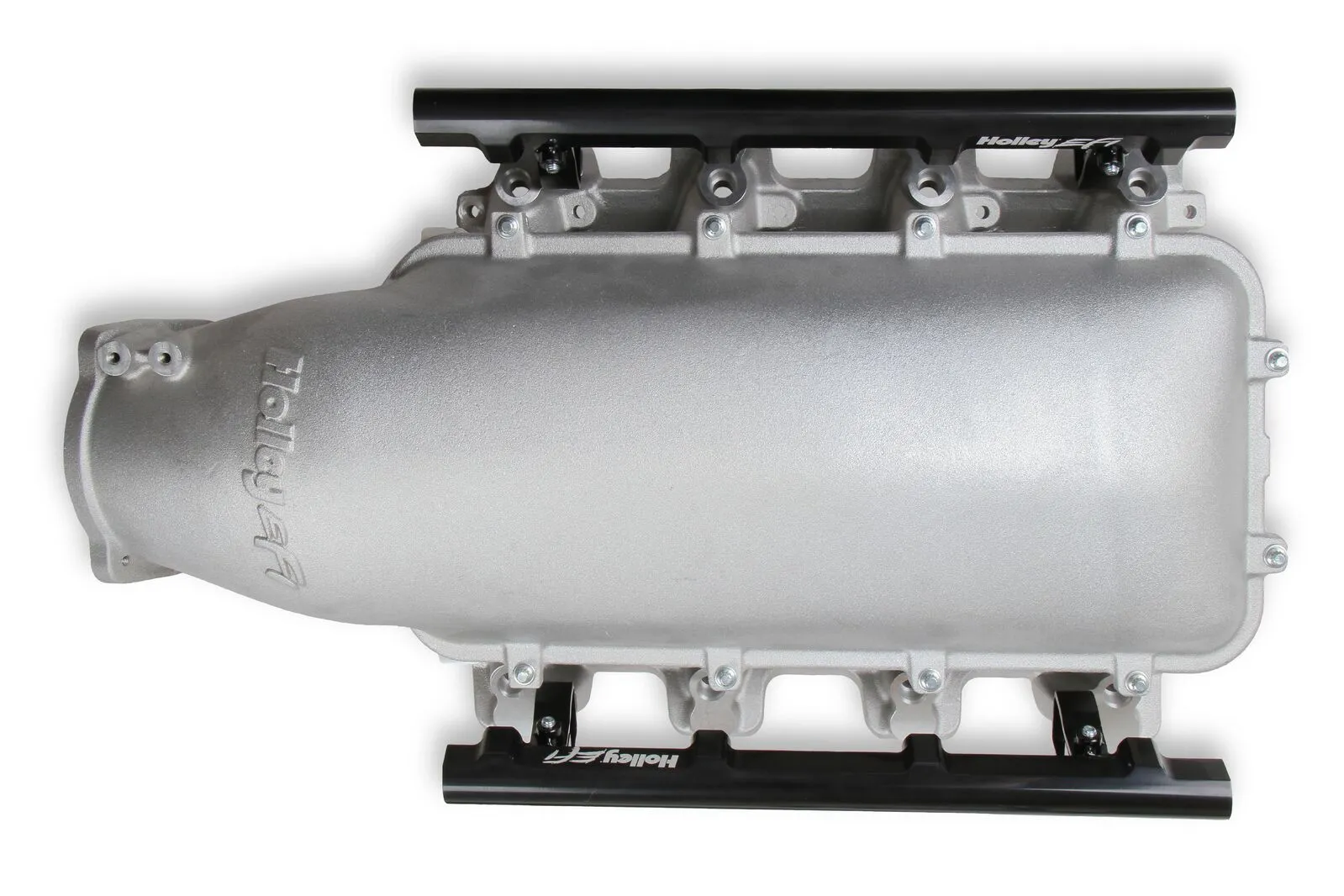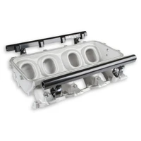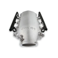 The Holley LS1/2/6 Lo-Ram intake manifold kits are designed for GM LS Gen III and IV engines equipped with GM LS1/2/6 (cathedral port) cylinder heads. These intake manifolds will work with OE or aftermarket cylinder heads. The Lo-Ram intake manifolds are designed for forced induction (supercharged or turbocharged) engine applications and the 105 mm throttle body part number 112-581 or similar models. The base intake manifold is designed with a low height to aid the packaging of a plenum-mounted air-to-water intercooler in a top-feed configuration.