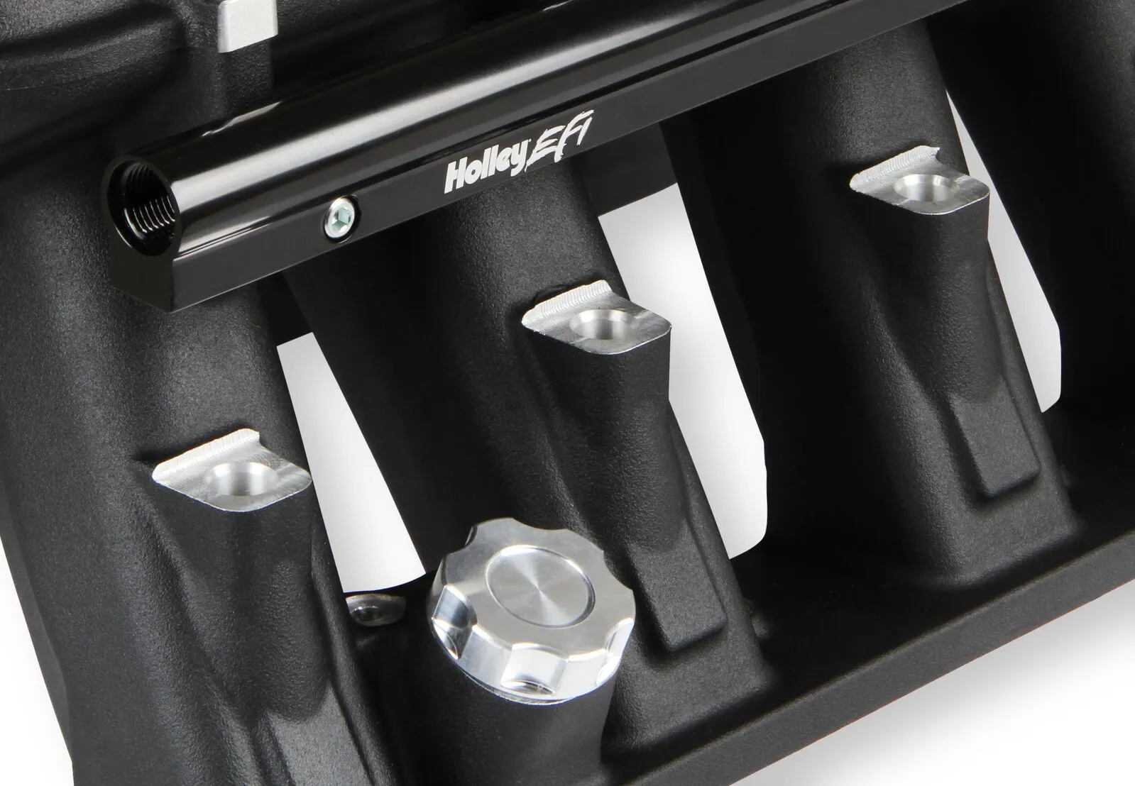 The EFI fuel rails are machined for -8AN O-ring fittings with passages large enough to accommodate high fuel flow and dampen pressure pulsations in the fuel system and come standard with EFI Hi-Ram kits.