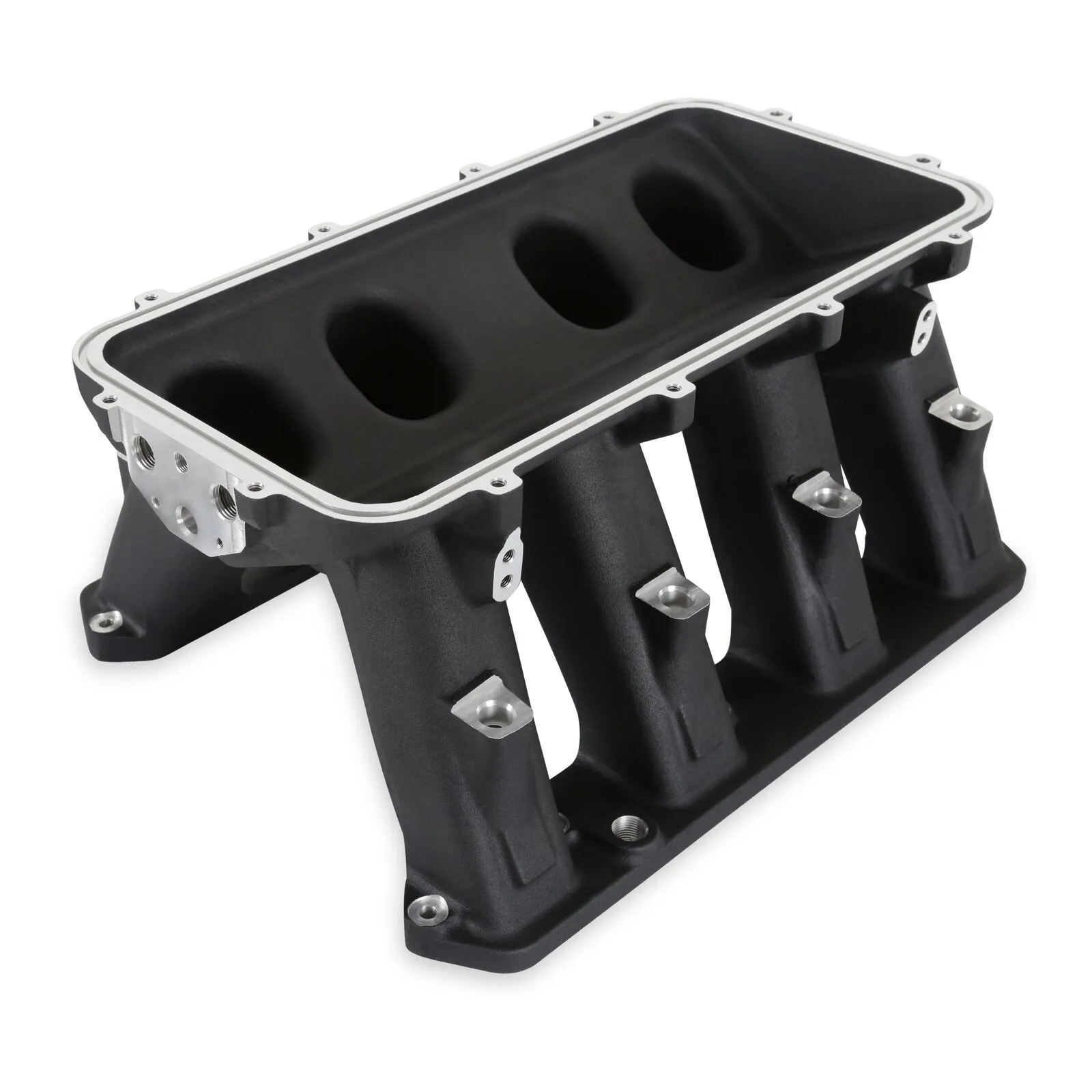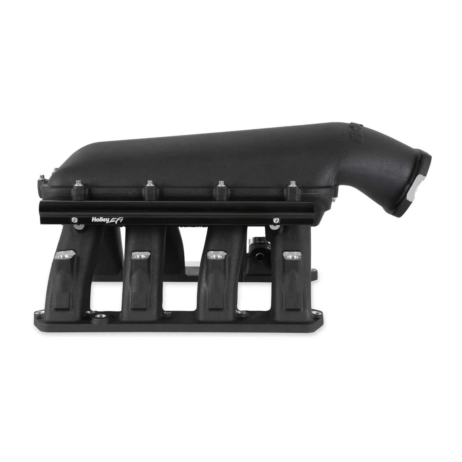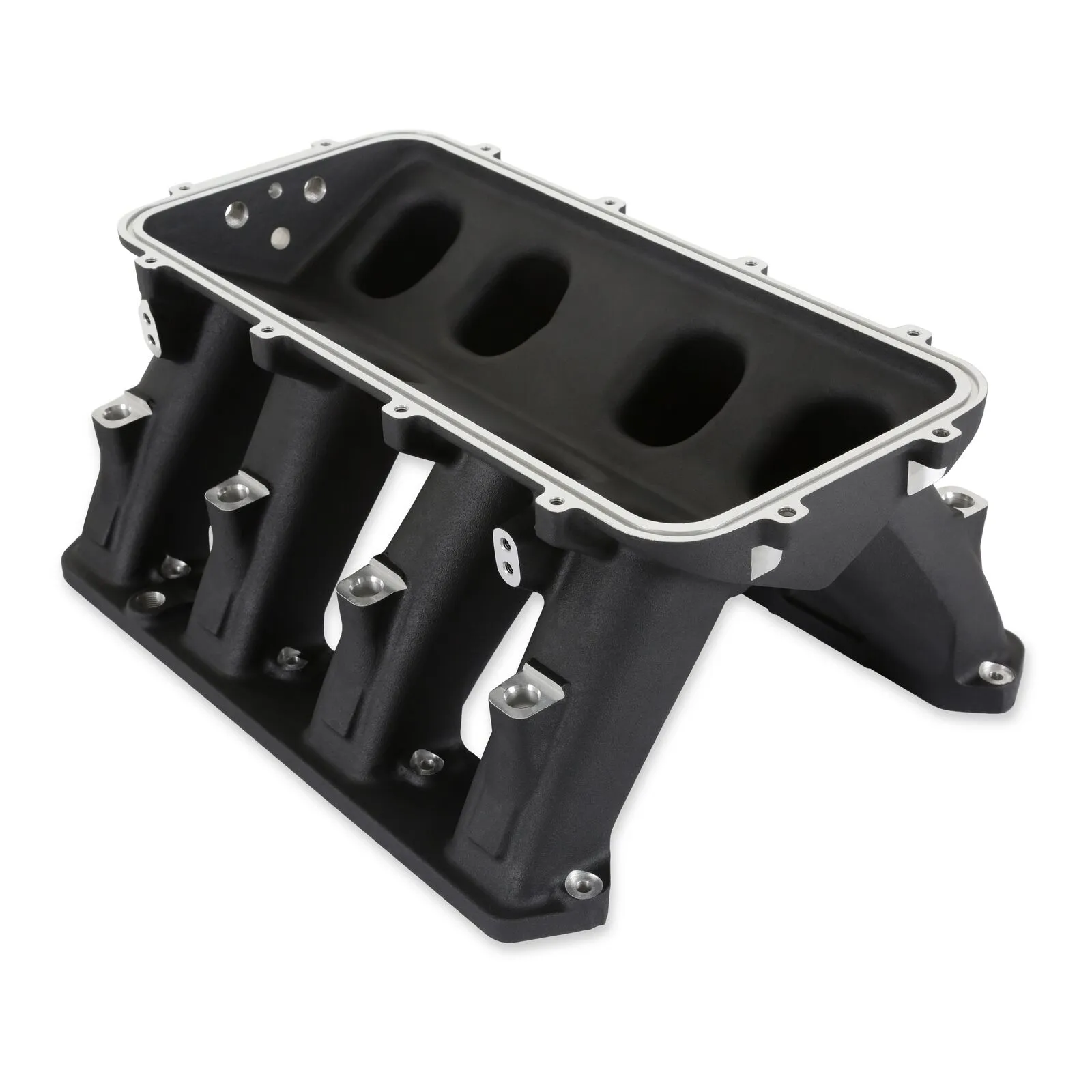 The base is designed to be modular in configuration to accept a wide range of EFI tops and to be attractive to builders and fabricators as the foundation for custom induction systems. Runner length and the tapered cross-section designed to perform well for a wide range of engine configurations.
