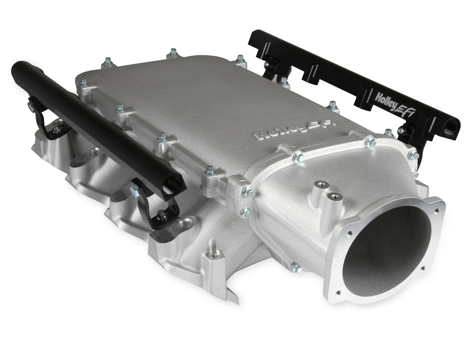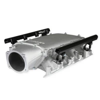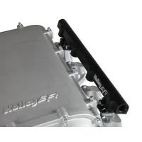 The Holley LS3 Lo-Ram intake manifold kits are designed for GM LS Gen III and IV engines equipped with GM LS3/L92 cylinder heads. These intake manifolds will work with OE or aftermarket cylinder heads. The Ultra Lo-Ram intake manifolds are designed for forced induction (supercharged or turbocharged) engine applications with peak power at 7000-8000 rpm depending on the application. The Ultra Lo-Ram plenum flange has a 105 mm opening to work with throttle body part number 112-581 or similar models. The base intake manifold is designed with a lower overall height to fit under a stock or mildly modified hood in the front configuration. The LS3 Ultra Lo-Ram is constructed to provide a very low profile modular intake manifold suitable for fabrication of special throttle body adapters or inlet ducts for custom installations. Available with single or dual injector provisions and a burst panel flange options.The fuel rail kits come with two sets of brackets. A set for long (usually standard length) fuel injectors and a set for short (such as Pico, or LS7) fuel injectors.