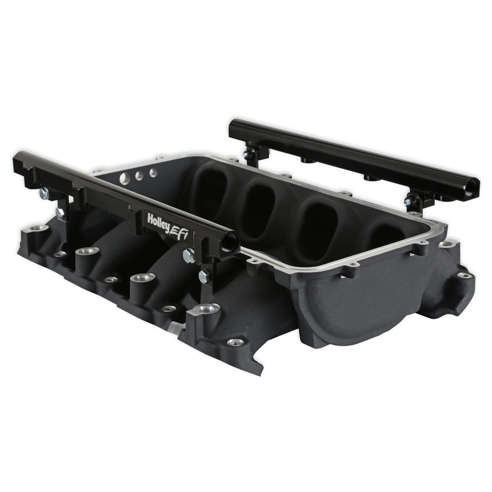 The Holley GM Gen V LT Lo-Ram intake manifold kits are designed for GM Gen V LT engines equipped with GM LT cylinder heads. These intake manifolds will work with OE or aftermarket cylinder heads. The Lo-Ram intake manifolds are designed for forced induction (supercharged or turbocharged) engine applications with peak power at 7,000-8,000 rpm depending on the application.