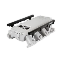 The front entry throttle body flange has a 105mm opening to work with throttle body part number 112-581 or similar models. The front-feed base intake manifold is designed with a lower overall height to fit under a stock or mildly modified hood. The Ultra Lo-Ram provides a very low-profile modular intake manifold along with various fabrication flanges to aid the fabrication of special throttle body adapters or inlet ducts for custom installations. Available for OE direct fuel injection only and with port fuel injection provisions and a burst panel flange options.