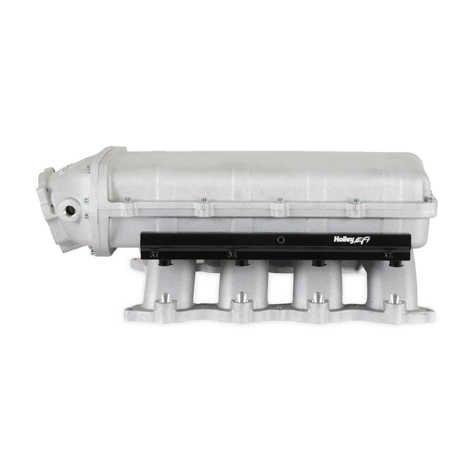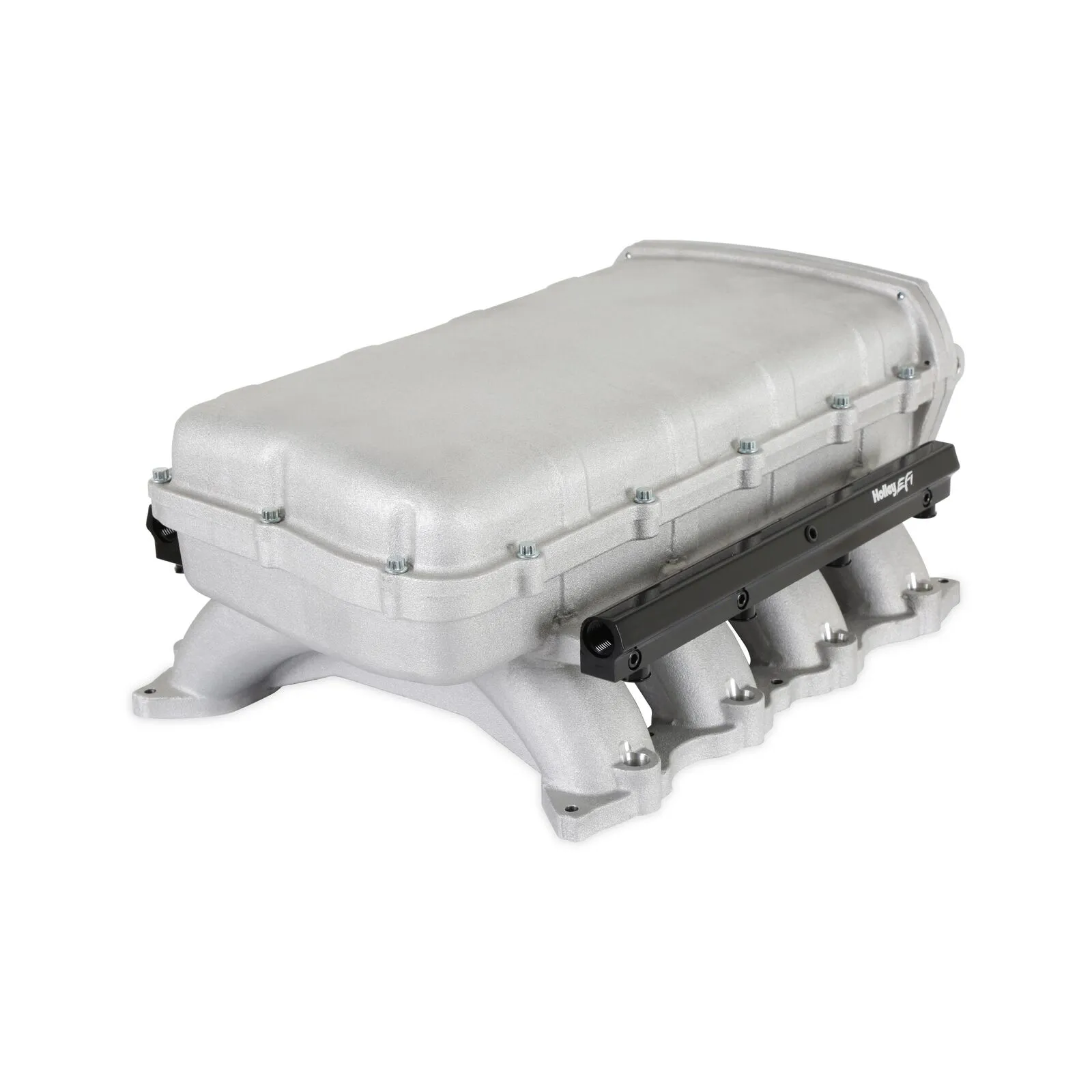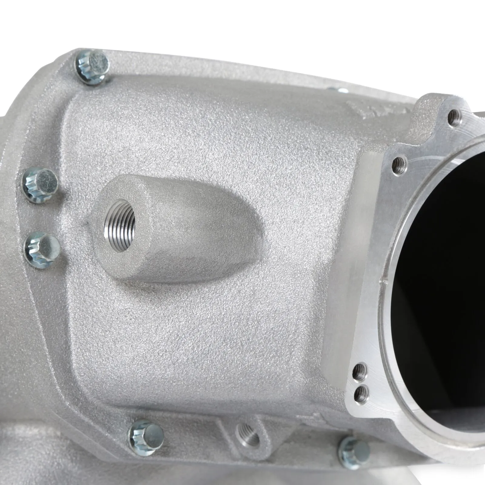 The aggressively designed Hi-Ram is constructed in a two-piece design to accommodate for air to water intercoolers and feature up to 20% more plenum volume versus Ultra Lo Rams. This manifold design is only offered in an oval throttle body configuration.