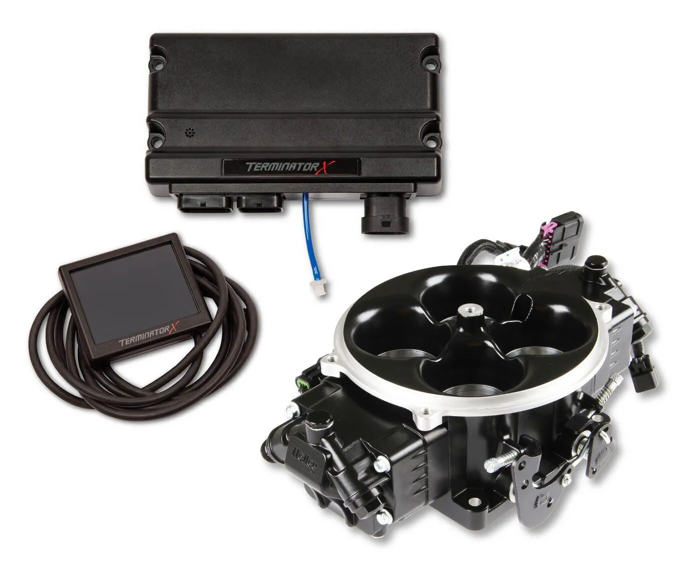 The Terminator X Stealth 4500 EFI system from Holley features 8, 100LB/HR Fuel Injectors capable of supporting up to 1500 HP naturally aspirated or 1250 HP on forced induction applications. The Terminator X ECU is capable of fuel map self-learning and ignition timing control, improving idle stability, drivability, and wide-open throttle horsepower! Designed to fit with Gen 3 Ultra Dominator air cleaners and fuel crossovers, allowing you to easily convert your 4500 equipped 800+ horsepower dragster or door car!