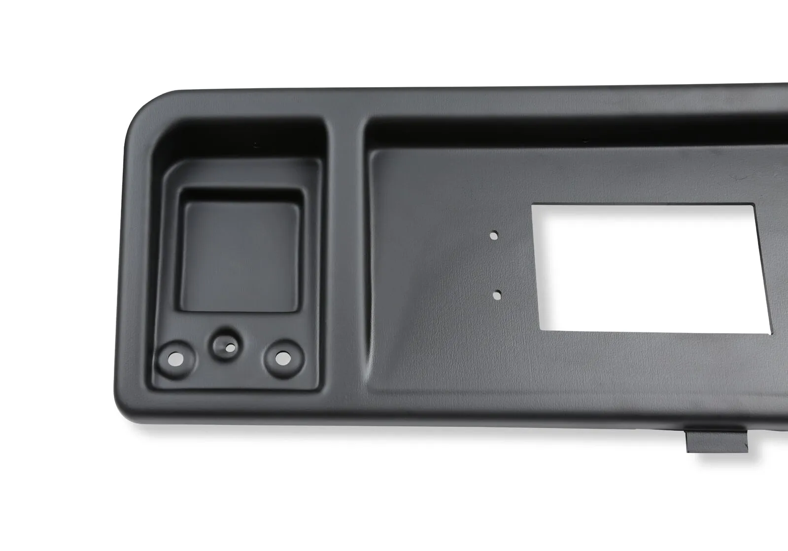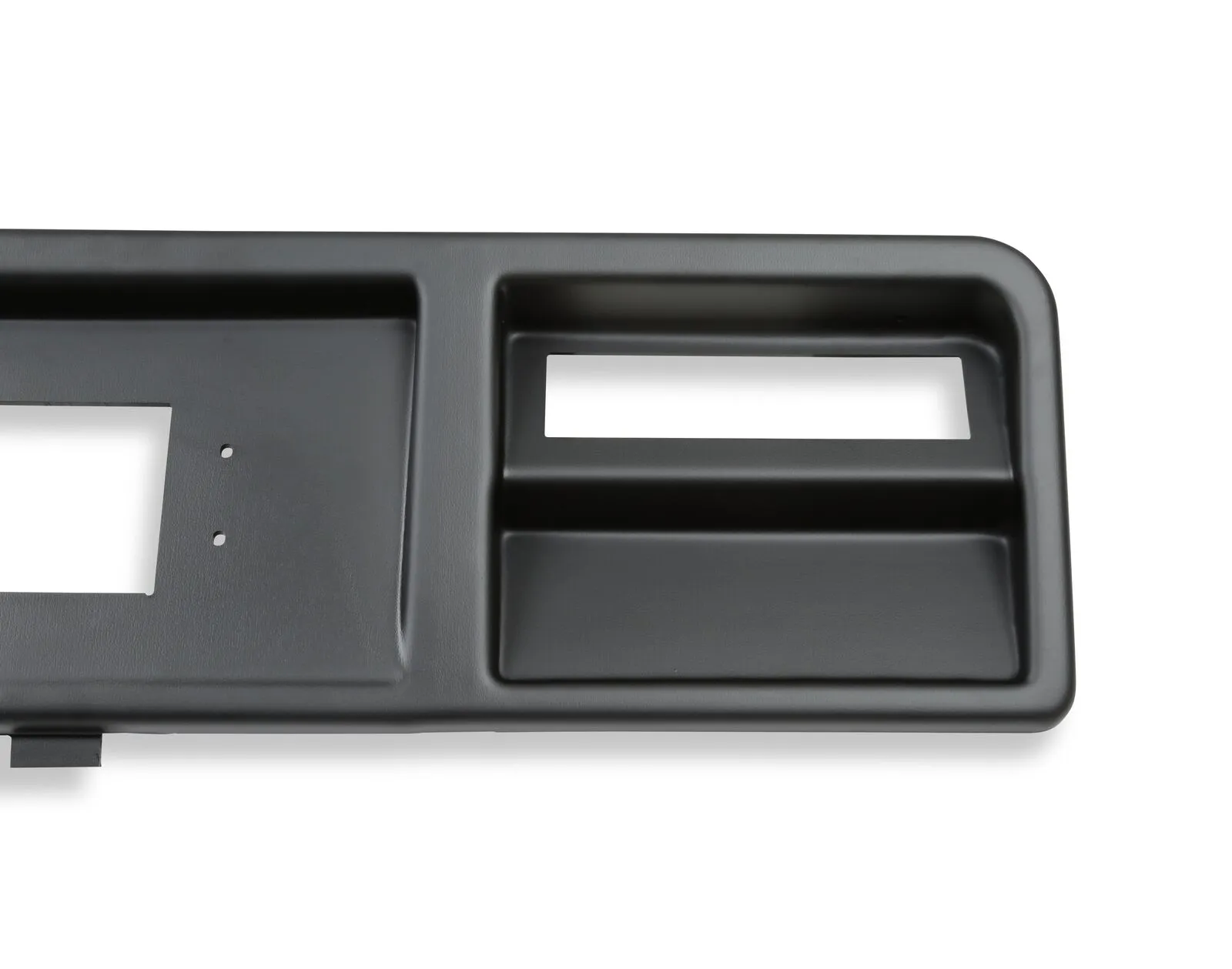 Dash bezel is designed to work with the Holley dashes and are made from a 5/32" thick UV-resistant ABS composite material. Structurally, these bezels are as strong, or stronger than the OEM panels. The bezels come in a matte black finish that will accent your interior. Applications available for muscle cars and trucks.