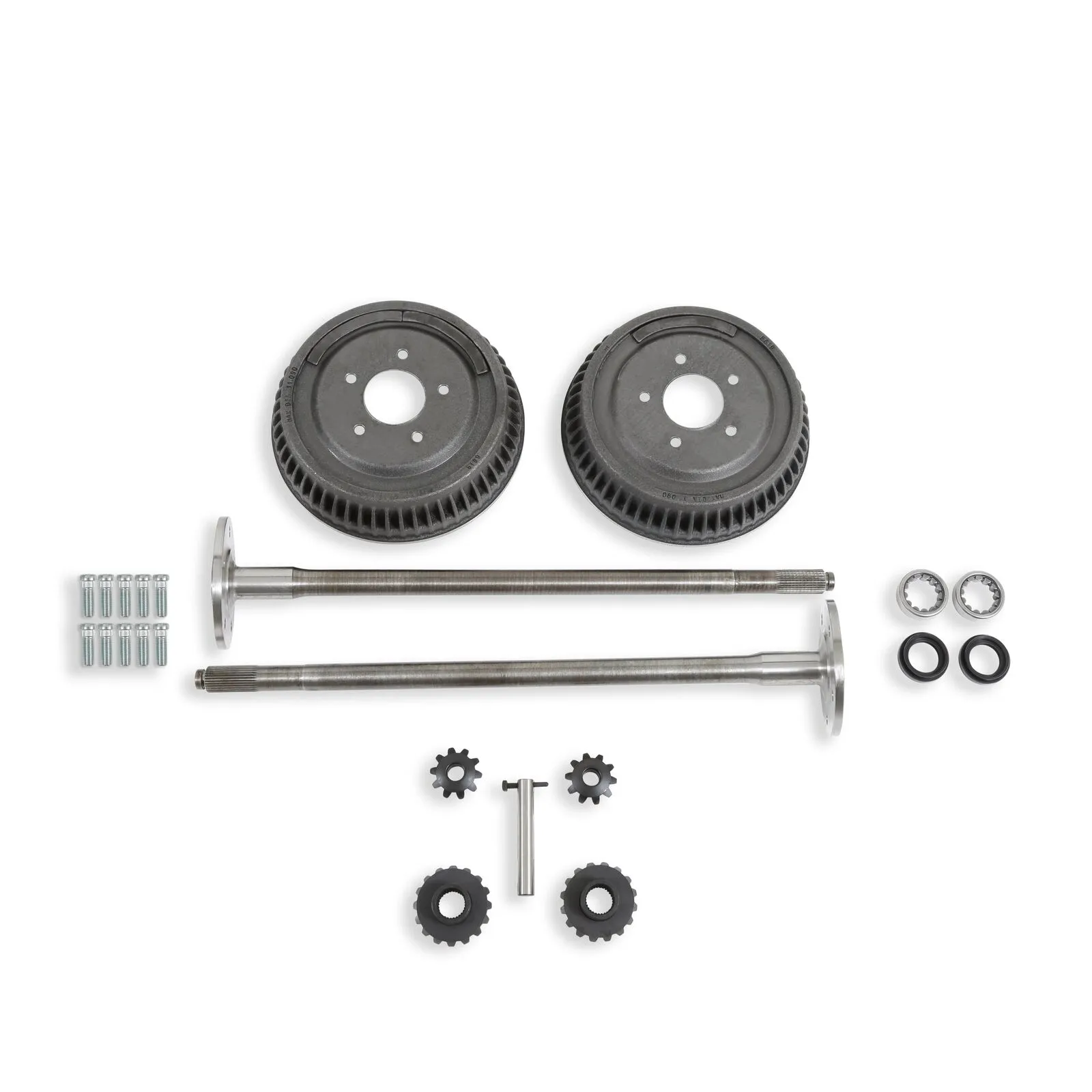 Early GM trucks all came with 6 lug axles. Not only does this limit your wheel choices, but it restricts your options on brakes as well. Hurst Engineering is here with the solution of our 5-lug axle conversion kits. These kits include axles, axle seals/bearings, spider gears, drums, and studs. The axles are made from 1541H alloy for supreme strength and durability. This kit is designed for the 8.875 12-Bolt rear end with the axles featuring 30 spline ends, a 5x5" lug pattern, and are 30-3/4" in length. Look to Hurst Engineering for your truck axle needs.