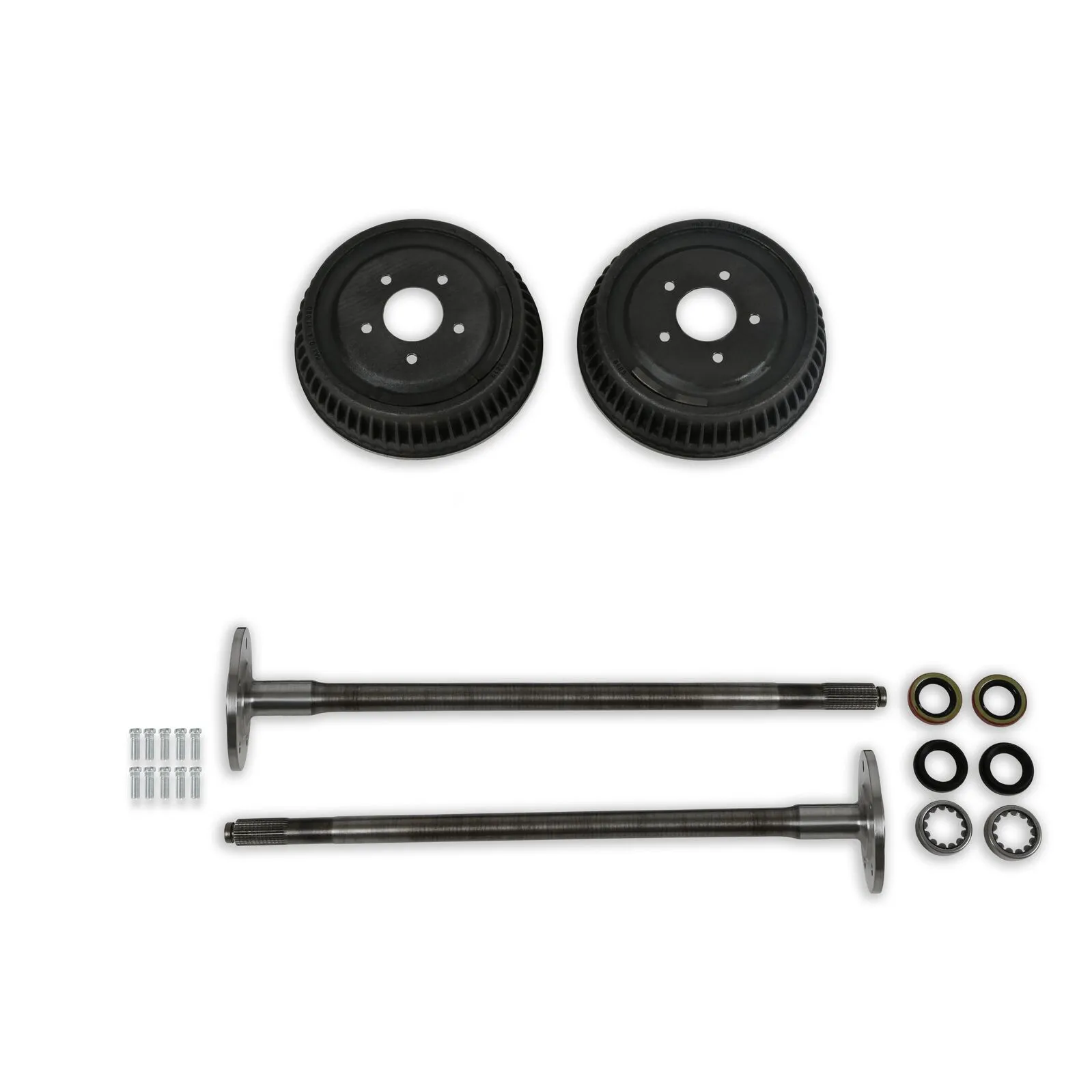 Early GM trucks all came with 6 lug axles. Not only does this limit your wheel choices, but it restricts your options on brakes as well. Hurst Engineering is here with the solution of our 5 lug axle conversion kits. These kits include axles, axle seals/bearings, drums, and studs. The axles are made from 1541H alloy for supreme strength and durability. This kit is designed for the 8.875 12-Bolt rear end with the axles featuring 30 spline ends, a 5x5" lug pattern, and are 30-3/4" in length. Look to Hurst Engineering for your truck axle needs.