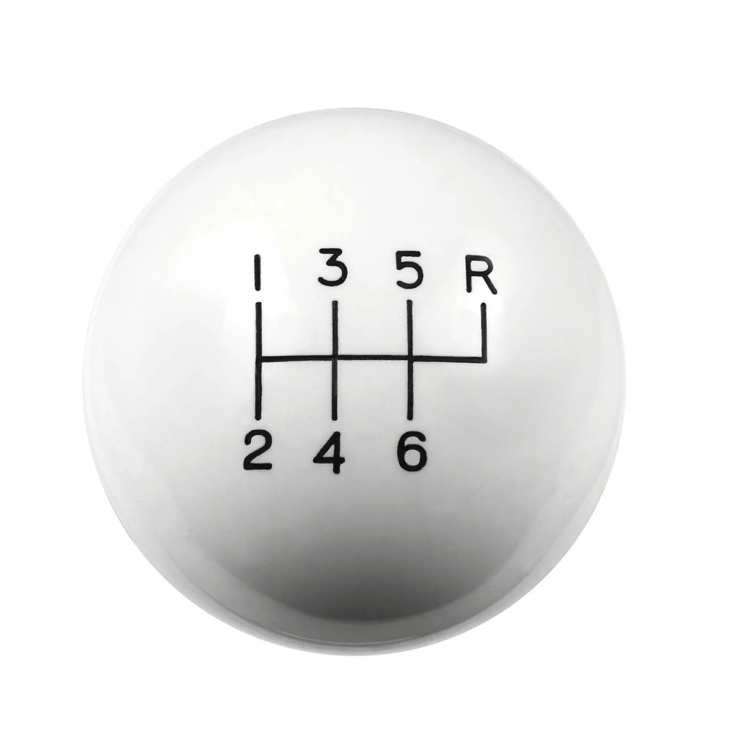Solid high gloss, high strength plastic. 2-1/4 in. diameter with engraved inlaid shift pattern and molded-in brass thread insert. Complete with jam nut.