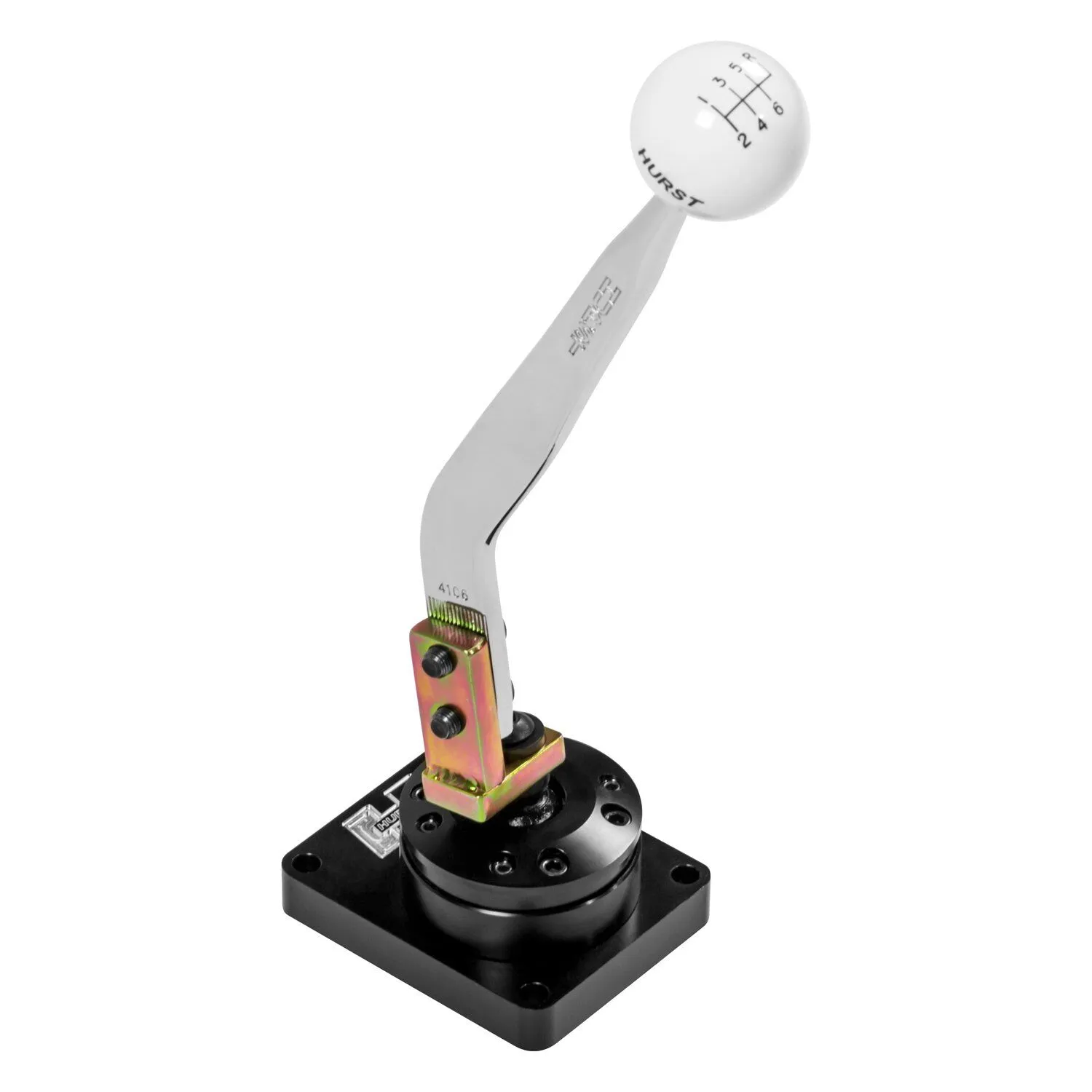 - Includes Classic Hurst Chrome Flat-blade Stick & White Shift Knob