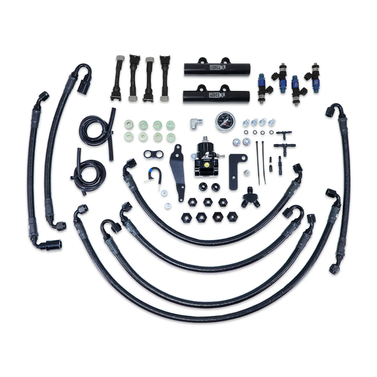 The IAG Fuel System kits provide everything you need to successfully feed your engine with enough fuel to meet your horsepower demands. Made in the USA and constructed of chemical resistant PTFE, these line kits are easy to install and don't require any cutting or hose assembly. Each line kit is compatible with modern ethanol fuels, including E85. These kits include IAG Fuel Rails and the IAG Adjustable Fuel Regulator, for precise control of your fuel pressure. Included in these kits are extra hoses to attach to the popular continental flex fuel sensors used in many common flex fuel kits. The push-to-connect fittings make installation easy and allow for precise control of your engine based on the ethanol content of your fuel when used with a properly equipped flex fuel kit such as the one sold by Cobb Tuning.