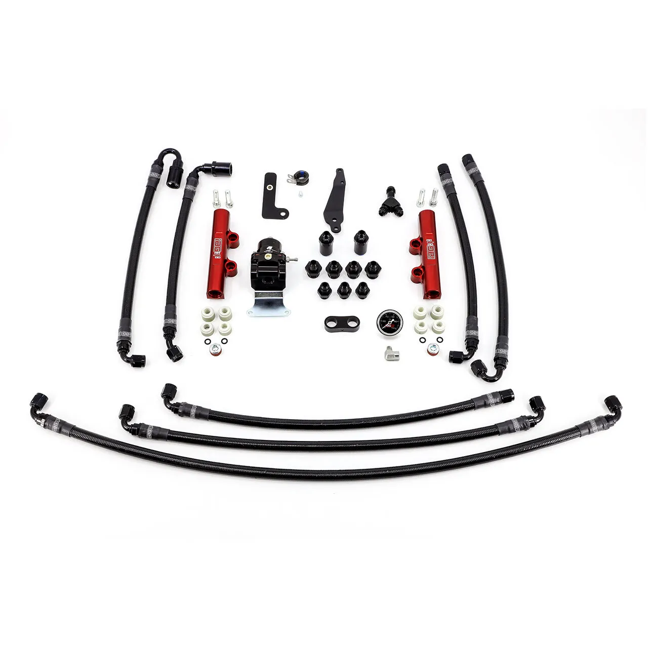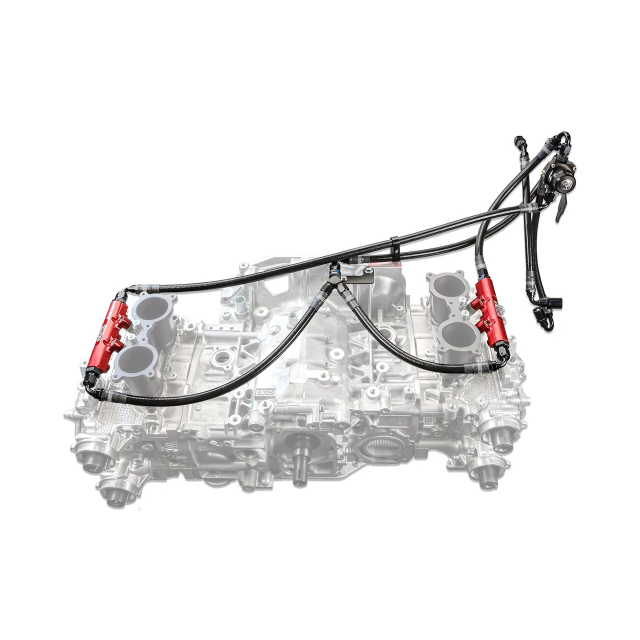The IAG Performance PTFE Engine Bay Flex Fuel Kit for the 2008-21 Subaru STI combines our popular PTFE Flex Fuel Line kit with our Red IAG Top Feed Fuel Rails and the Aeromotive Regulator for a complete installation. Just add your choice of top feed fuel injectors, Cobb Flex Fuel Sensor and IAG TGV housings to round out this kit and complete your installation. All lines feature Fragola 6000 series PTFE hose and are pre-assembled and ready for installation. The lines are stainless reinforced and feature black nylon covering to prevent scratching. With a 2000 psi working pressure and 8000 psi burst pressure, these lines will easily handle the demands of your fuel system. PTFE is a coating that resists heat and corrosion, making it ideal for all automotive fluid types. These hoses will not allow the permeation of fuel vapors and will eliminate the chances of fuel smell that other lines can exhibit. The hoses include custom fittings specifically designed to work with the COBB Flex Fuel Sensor and come pre-assembled to application-specific lengths for easy installation.