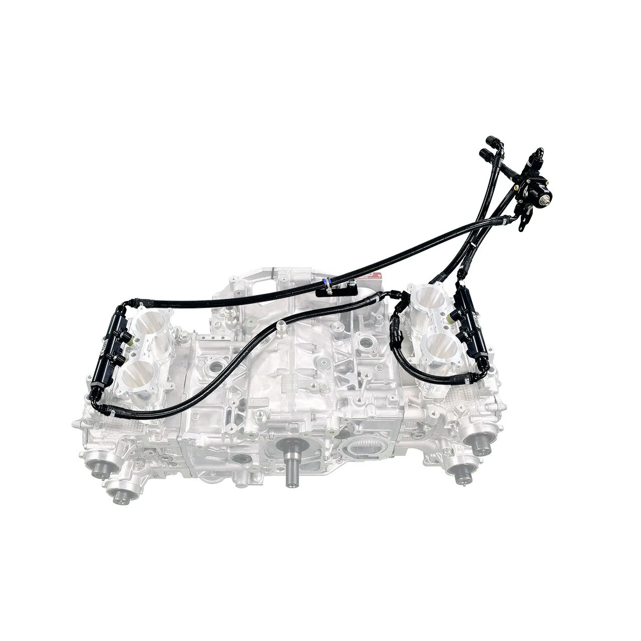 The IAG PTFE Engine Bay Fuel System Kit for the 2008-14 Subaru WRX combines our popular PTFE Fuel Line kit with Black IAG Top Feed Fuel Rails, Aeromotive Fuel Pressure Regulator and your 1300cc Injector Dynamics fuel injectors. Just add your choice of IAG TGV housings to round out this kit and complete your installation. All lines feature Fragola 6000 series PTFE hose and are pre-assembled and ready for installation. The lines are stainless reinforced and feature black nylon covering to prevent scratching. With a 2000 psi working pressure and 8000 psi burst pressure, these lines will easily handle the demands of your fuel system. PTFE is a coating that resists heat and corrosion, making it ideal for all automotive fluid types. These hoses will not allow the permeation of fuel vapors and will eliminate the chances of fuel smell that other lines can exhibit. These hoses are pre-assembled to application-specific lengths for easy installation.