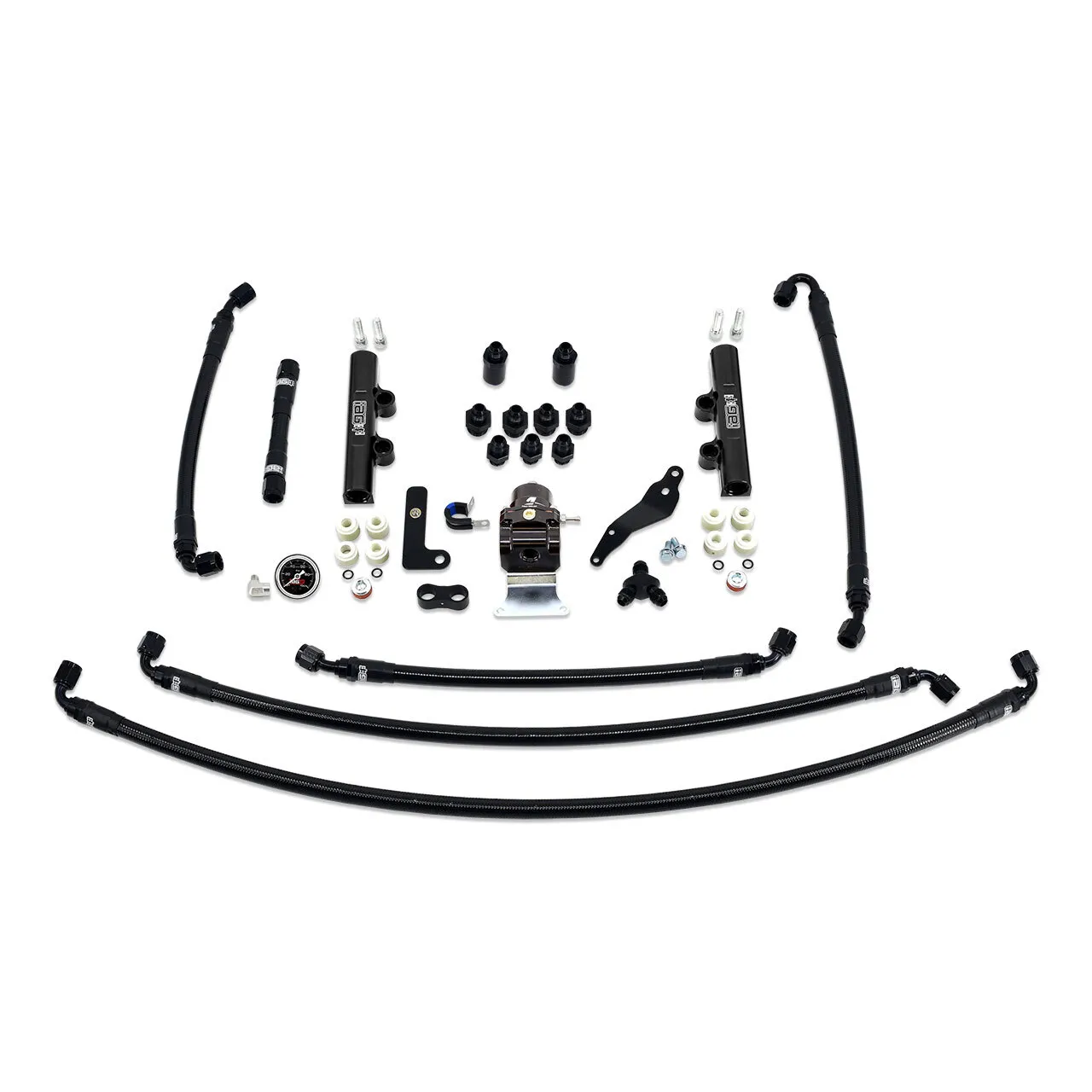 The IAG PTFE Engine Bay Fuel Kit for the 2008-14 Subaru WRX combines our popular PTFE Fuel Line kit with our Black IAG Top Feed Fuel Rails and the Aeromotive Regulator for a complete installation. Just add your choice of top feed fuel injector and IAG TGV housings to round out this kit and complete your installation. All lines feature Fragola 6000 series PTFE hose and are pre-assembled and ready for installation. The lines are stainless reinforced and feature black nylon covering to prevent scratching. With a 2000 psi working pressure and 8000 psi burst pressure, these lines will easily handle the demands of your fuel system. PTFE is a coating that resists heat and corrosion, making it ideal for all automotive fluid types. PTFE hoses will not allow the permeation of fuel vapors and will eliminate the chances of fuel smell that other lines can exhibit. Pre-assembled to application-specific lengths - for easy installation.