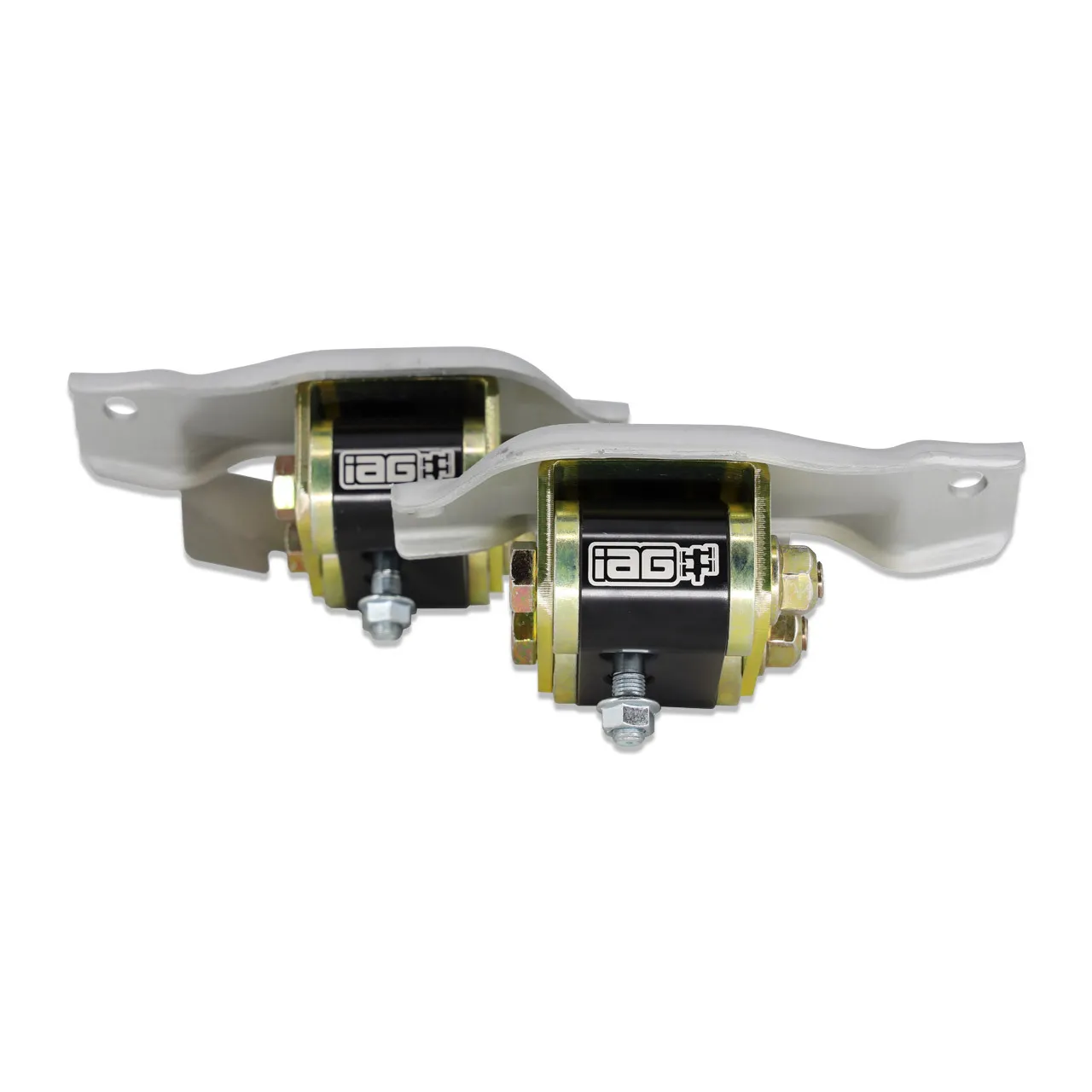The IAG Race Series Engine Mounts are designed to be an all-out racing mount. These are ideal for the person that is looking for performance gains at the road course, dragstrip or autocross. The solid steel bushings included with the mounts leave no room for movement so NVH (Noise Vibration Harshness) is added in the cabin.