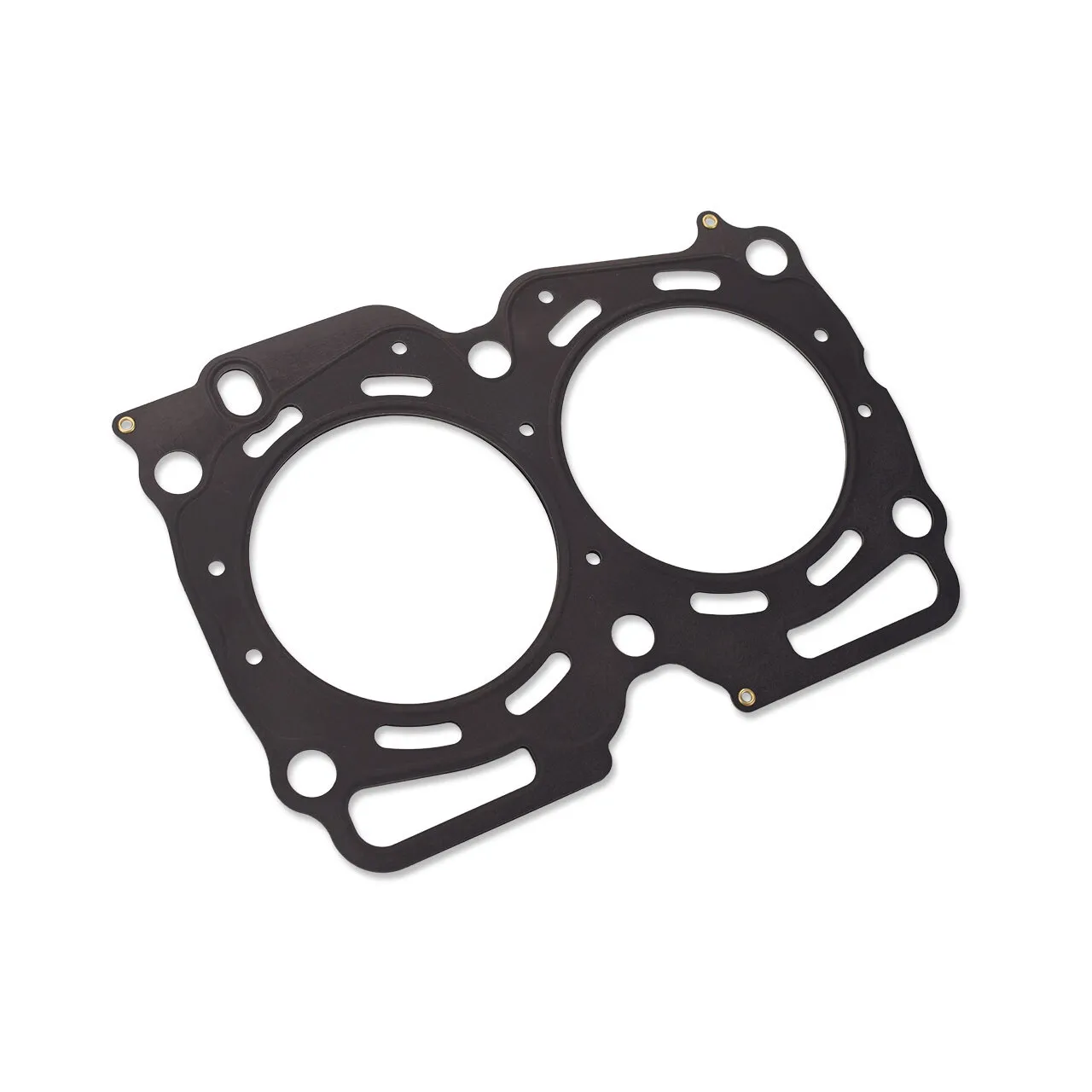 The IAG Performance / JE Pro Seal Subaru MLS head gaskets were designed specifically for use with IAG's 14mm Head Stud Sets. The gaskets are manufactured from stainless steel material and feature enlarged head stud holes to clear 14mm head studs without drilling or modifying the gasket. The multi-layer design is embossed and tempered for a long service life. The gaskets include a proprietary four step coating process after embossing which features a silicone coat for improved sealing properties. The Subaru 100mm Head Gasket for the EJ25 / EJ257 comes in a 0.039in thickness and the gaskets are sold individually. (x2) are required per long block. Multilayer Stainless Steel Head gasket Designed Specifically for 14mm Head Studs Embossed and tempered Long service life Proprietary 4 step coating process (After embossing)