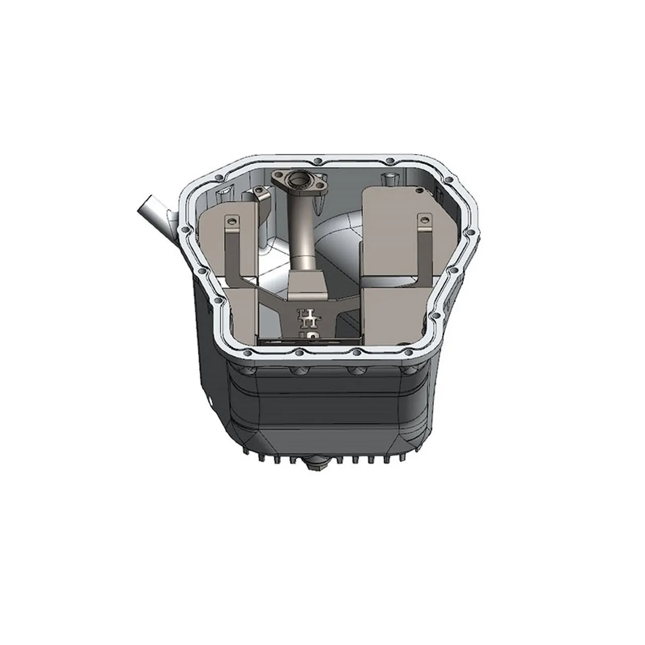 IAG offers our V2 Oil Pickup, Street Series Baffle and Windage Tray combined with our New Oil Pan coated with a black finish as a complete package. About Street Series EJ Oil PanThe IAG Street Series Oil Pan for the Subaru WRX and STI is uniquely designed and CNC machined to suit a wide range of street and track applications. The cast aluminum oil pan was designed with fitment for a larger variety of popular headers in mind, while still increasing oil capacity up to 30% over OEM. The design incorporates cooling fins to aid in dissipating heat from the oil as air passes over them. The included oil drain plug is integrated into the lower cooling fins at the absolute bottom of the pan to make sure all the waste oil is removed during maintenance changes. The oil drain plug uses an OEM style crush washer. The oil pan is also threaded with 1/8th inch NPT port to accept many popular oil temperature sensors. 1/8th inch NPT plug is also included in the event that the sensor port is not used.The upper flange mounting surface is CNC machined for better hardware fitment. The flange features a sealing O-ring for easier installation and removal. The pan is designed to use the included OEM style Viton dipstick o-rings with a unique chamfer to aid in the installation of the dipstick. Internally, the pan includes our integrated, stainless steel, Street Series Oil Baffle that is designed to prevent oil inside the pan from sloshing around and creating cavitation, which can lead to oil starvation. The baffle is engineered to be removable for future upgrades and easy cleaning. About Windage TrayThe job of the windage tray is to help direct oil from the upper crankcase down into the lower crankcase and oil pan area. Manufactured from stainless steel, precision-formed louvers direct oil downwards and help to prevent oil that is draining from the cylinder heads in the lower crankcase area from sloshing upwards into the path of the crankshaft and connecting rods, thus reducing aeration