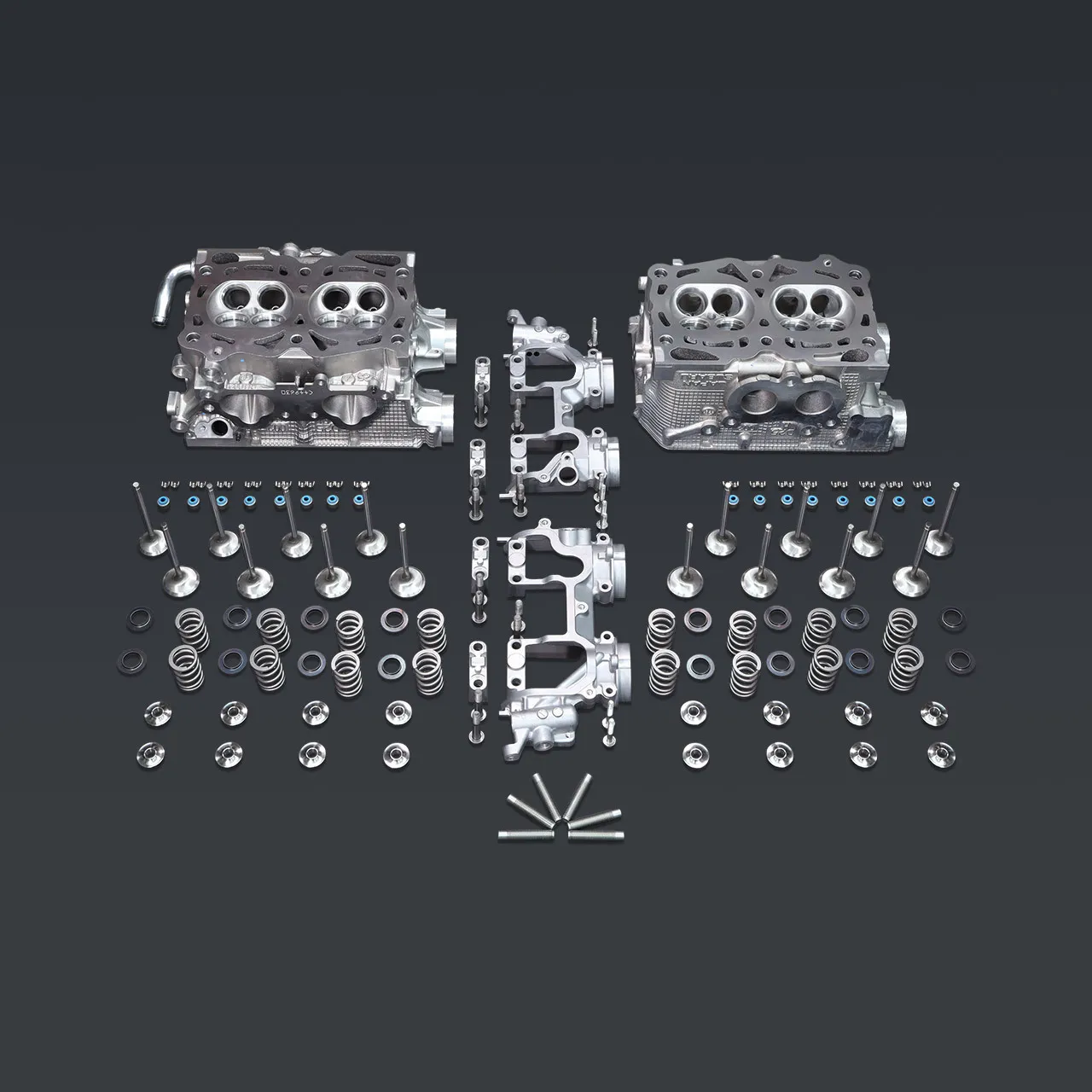 IAG Stage 1 Cylinder Head Package: IAG's Stage 1 cylinder heads are intended for those looking for a cost-effective OEM+ replacement. Each package starts with brand new S20 WRX OEM head castings, directly from Subaru of America. The bare castings are visually inspected and then fixtured into our in-house Centroid 5-axis CNC Machine. This is one of the most advanced pieces of precision engine machining equipment in the world. In the Centroid, the heads undergo a cam clearance machining process which removes material from the lifter area where larger lift and duration cam profiles are known to contact the castings. Then the heads are then fixtured in our Serdi 3.0 Valve Guide and Seat Machine to cut all intake and exhaust seats with a multi-angle valve job that suits the flow characteristics of GSC's standard size 36mm Intake and 32mm Exhaust valves. At this point, the heads' decks are resurfaced using our TS-3000 BlockMate, which cuts the aluminum to a smooth, even finish. Next, the heads are ultrasonically cleaned to remove debris and oils from the machining process. Finally, the heads are assembled using GSC Single Valve Springs and Titanium Retainers along with GSC Viton stem seals.