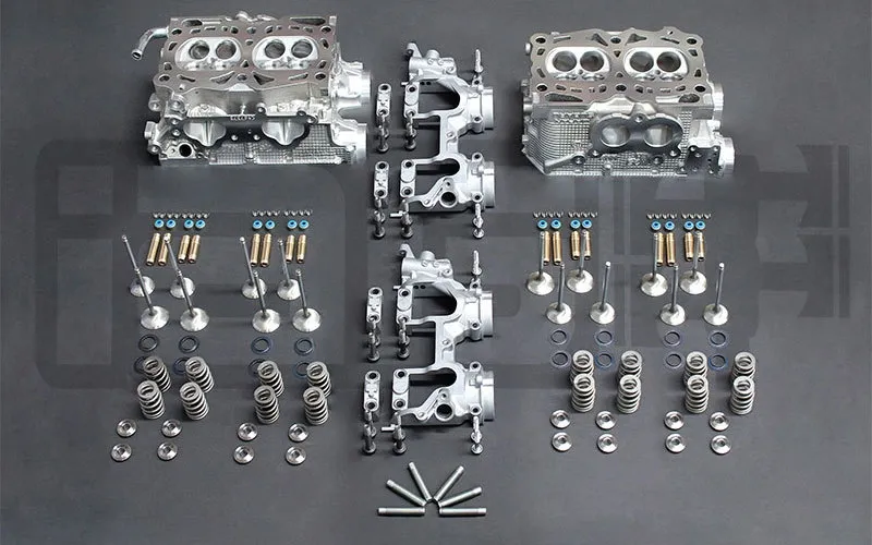 IAG's Stage 4 Cylinder Head Package utilizes a CNC porting program for the V25 heads that was developed over the past five years and tested on the most successful high-horsepower Subaru's. The ported head package starts with brand new V25 2007 STI OEM head castings directly from Subaru of America. The bare castings are visually inspected then fixtured into our in-house Centroid 5-axis CNC Machine, one of the most advanced precision engine machining equipment in the world. The Centroid CNC ports the intake and hard to reach exhaust "dog-leg" port runner. The benefit of CNC porting is not only an efficient way of machining the heads it also offers consistent port results that are hard to achieve by hand.