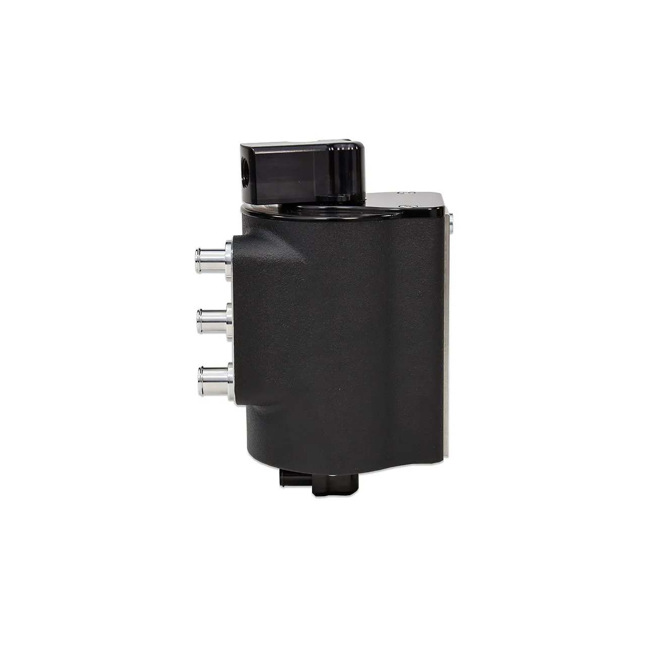 The IAG Air / Oil Separator features a proprietary heating system that capably handles issues frequently encountered in lower-quality catch cans. Unlike inferior designs that allow hot PCV gasses to pass through cold passages, leading to condensation mixing with oil and causing sludge, IAG's improved design is linked to the vehicle's cooling system. This enables the transfer of heat from the engine into the AOS canister. By heating the AOS canister to the engine's temperature, condensation and associated buildup are significantly diminished or completely eliminated.