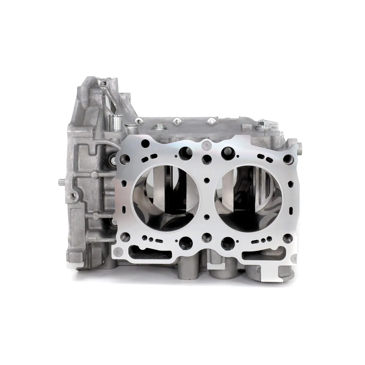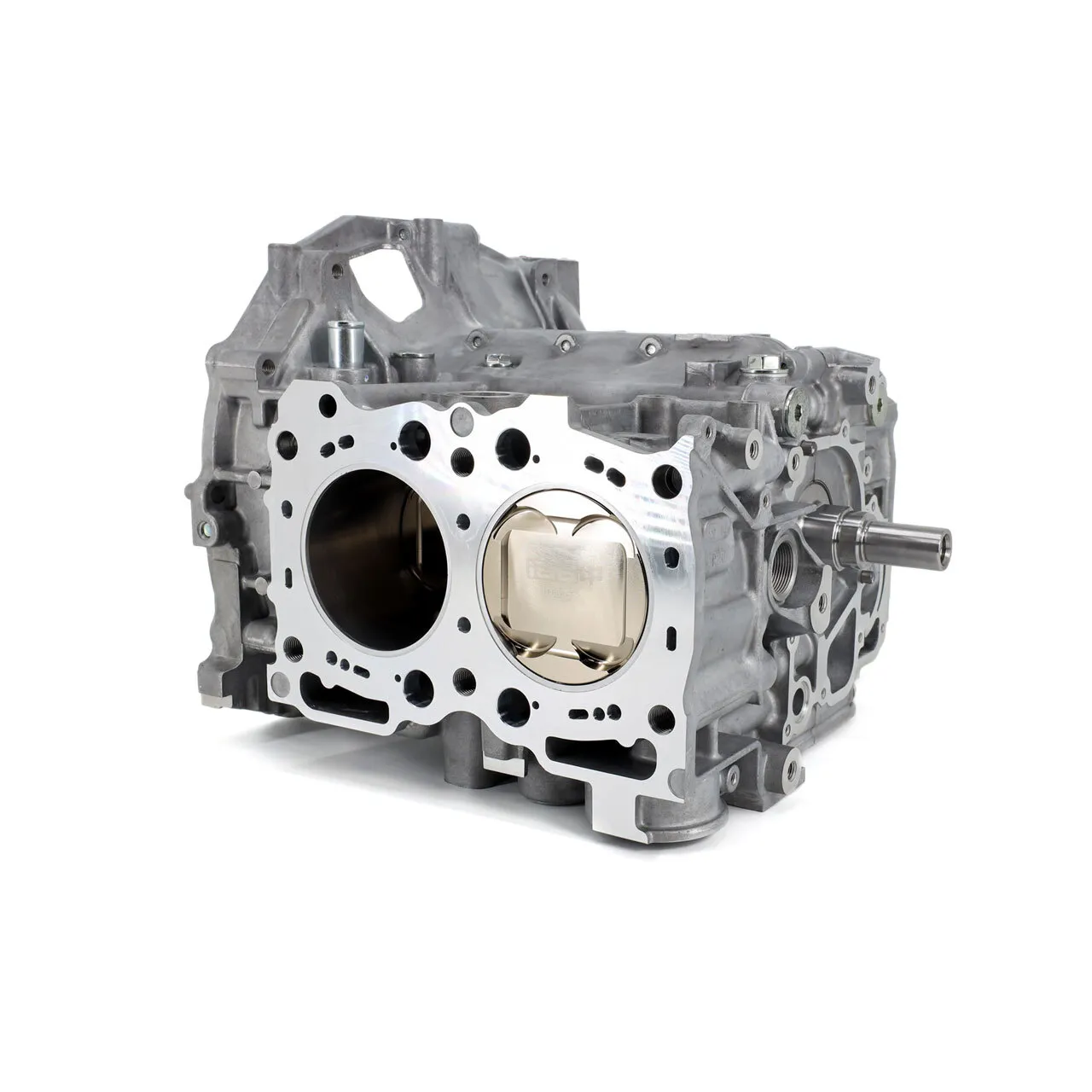 The IAG 950 EJ20 Short Block is the ultimate "weekend racer" block. Built to withstand up to 950 BHP, this is our strongest "Street" short block offering. The IAG 950 short block features +2mm IAG Spec H-Beam forged connecting rods, IAG-Spec JE Pistons with electroless nickel plated coating with H13 tool steel wrist pins, and our venerable "Fire-Lock" head gasket system for 14mm head studs. Each IAG 950 short block is hand assembled using ACL or King rod and main bearings. This combination of parts makes the IAG 950 the perfect block for drag or road racing. These blocks are ideal for EJ20 WRX owners looking to race their vehicles on the weekends and are designed to be used with EJ20 2.0l cylinder heads. The IAG 950 Short Block starts with brand new Subaru 2.0L engine case halves. Our machinists machine the assembled case halves in our Haas VF-4SS CNC mill to accept the IAG Closed Deck inserts, transforming the block into a solid deck. Next, a deck pair of deck plates are attached and the short block is bored and honed to 92.5mm in our in-house Sunnen SV-30 computer controlled cylinder hone. IAG's in-house honing process allows us to set custom piston to wall clearances to ensure quiet operation and reduced oil consumption. The Haas mill also cuts a groove at the top of each cylinder to accept the Fire-Lock head gasket rings and drills each head bolt hole for 14mm head studs. The modified case halves are then assembled using a new Subaru EJ20 2.0L crankshaft and IAG-Spec Tuff H-Beam +2mm connecting rods with ARP 625+ rod bolts. IAG Short blocks feature ACL or King Race rod and main bearings. Finally, the case halves are sealed with new OEM main/case bolts and sealant.