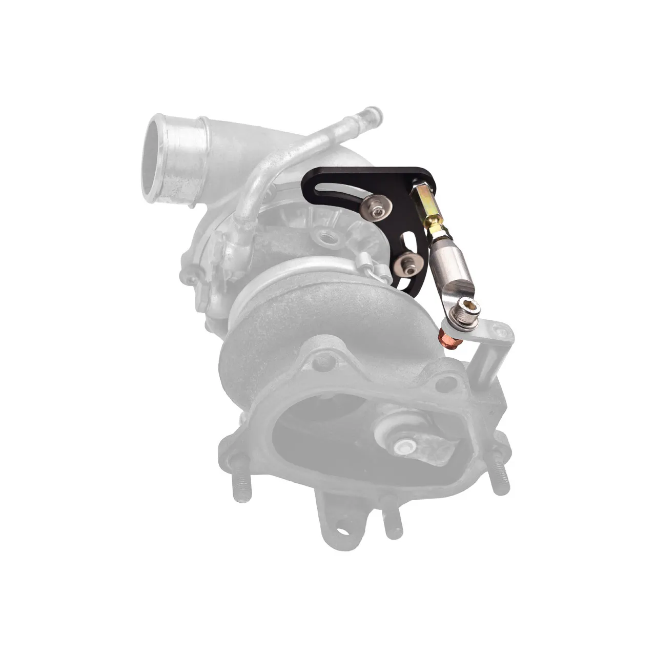 The IAG Performance internal wastegate locking bracket is designed to replace the wastegate actuator and lock the wastegate shut. This is the most versatile method of keeping your wastegate closed when switching to an external wastegate. The CNC machined bracket allows rotation along the compressor housing. This allows fitment across different VF, TD04/5 and DOM series turbos if you should upgrade in the future. The dual spherical bearing linkage makes installation a snap and can be easily reverted to a stock set-up. The center turnbuckle allows you to easily close the wastegate. Turning one direction lengthens the linkage. Turning the other way shortens it. The wastegate bracket is engineered and manufactured at our facility in Westminster, MD. The bracket is machined from a solid piece of 6061 billet aluminum and then anodized black. The linkage is made entirely of steel components and is zinc coated for corrosion protection. Comes with all hardware for an easy installation.