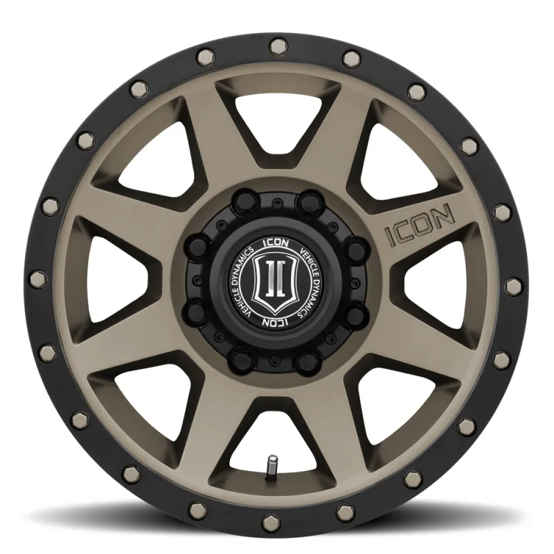 Bring a bold new look and incredible strength to your 8-lug pickup with the ICON Alloys REBOUND HD! Combining sharp lines, a concave spoke design, and "ICON-optimized" dimensions, these wheels will increase both the form and function of your 3/4-ton truck. Staying true to the ICON Alloys approach, the REBOUND has been engineered to maximize caliper clearance and optimize wheel position for un-hindered suspension travel and steering function. Backspace dimensions and wheel offset have been strategically developed to reduce scrub radius, improving all-around handling and ride quality and making a set of these wheels the perfect complement to an ICON Vehicle Dynamics suspension system.