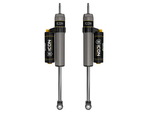ICONs 2.5 Aluminum Series shocks are designed and built to give your vehicle outstanding performance off-road and a smooth ride on the street. These shocks are configured specifically for each application in both length and damping tune. Featuring one-piece impact extruded aluminum cylinders, these 2.5 Aluminum Series shocks offer lighter weight, improved corrosion resistance, and a more uniform finish than traditional plated steel cylinders. Like all ICON'S Shock Absorbers, 2.5 Aluminum Series shocks are 100% rebuildable and 100% revalveable. For piggyback and specific remote reservoir applications, ICON'S unique use of a 6061 billet aluminum manifold a few inches below thetop cap of the shock creates an internal Bump Zone that when used creates an additional 20% of damping force. This additional force helps prevent harsh bottom outs and controls the suspension when compressing at high velocity. The ICON CDC Valve is an externally adjustable valve that restricts oil flow into the reservoir which creates 10 levels of compression damping force ranges.