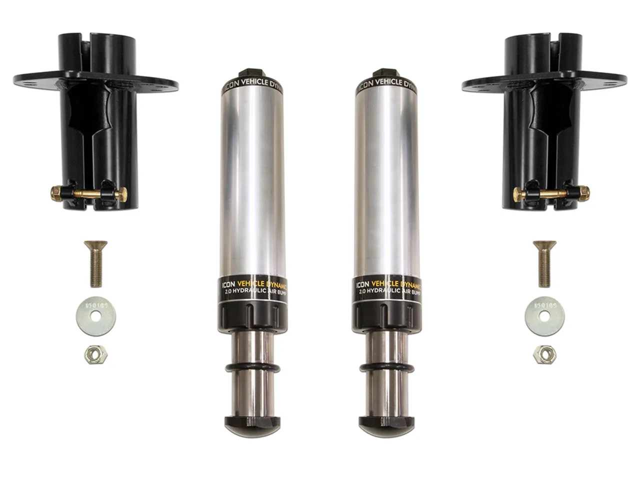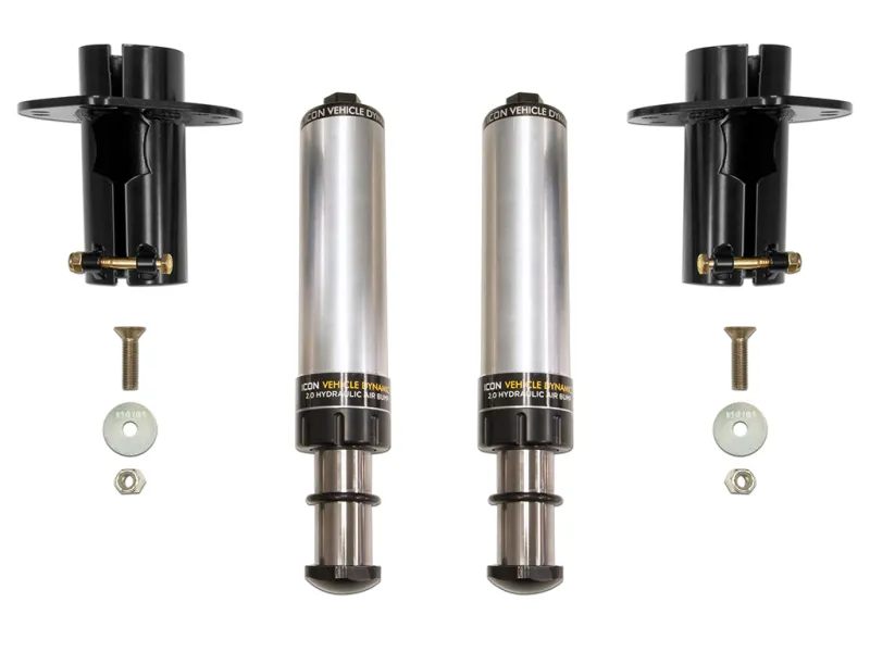 The ICON Vehicle Dynamics Front Hydraulic Bump Stop Kit for the 2007-2018 Jeep Wranger JK, 2018-UP Jeep Wrangler JL and 2020-Up Jeep Gladiator was deigned to provide unparalleledoff-roadperformanceat the limits of wheel travel by adding an extra layer of ICON damping ability to the front of your Jeep.The function of the bump stop is to control and limit the final position of the suspension during up-travel. The factory bump stops have a limited energy absorption capacity and an uncontrolled release of this energy upon rebound translating into a harsh ride and poor handling during more aggressive driving in rough terrain. ICONs FrontHydraulicBump Stop Kit features velocity sensitive technologymeaningthat as the shaft speed increases the damping ramps up to provide excellent bottoming resistance that wont negatively affect articulation. This energy is then released in a much more controlled manner allowing drivers to focus on the obstacles in front of them rather than being bounced around the cab.