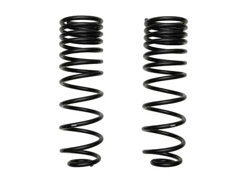 The ICON Jeep Gladiator rear coil springs provide 1.5" of lift height and feature a triple rate design with unique ICON-engineered droop, ride, and overload rates. This triple rate design allows for a soft rate at ride height for superb on-road comfort and a firmer overload rate that increases during compression for excellent bottoming resistance and off-road performance. Additionally, an even softer droop rate is engaged when the suspension approaches full extension for improved off-road ride quality. Like all ICON coil springs they feature a lifetime guarantee against sagging/breakage to produce confidence in knowing that you have the best suspension products available for the 2020-UP Jeep JT Gladiator.