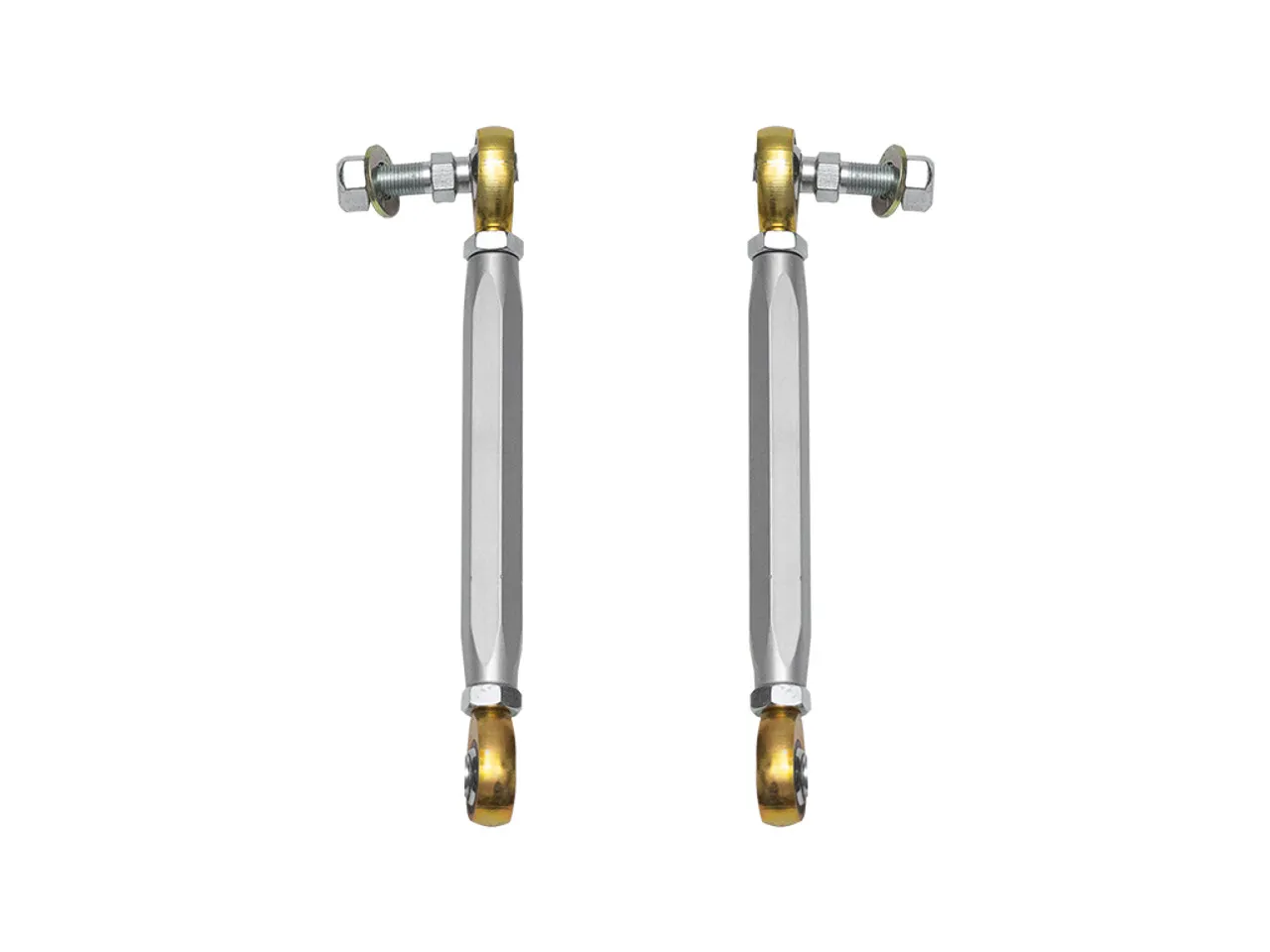 These billet aluminum sway bar links for your 2020-Up Jeep Gladiator JT prevent sway bar bind as the suspension approaches full droop when used with ICON rear shocks and springs while on vehicle adjustment allows for further fine tuning of the sway bar angle. High quality FK rod end bearings also eliminate bushing deflection common with stock bushings for confidence inspiring handling characteristics and allow for maximum articulation without binding.
