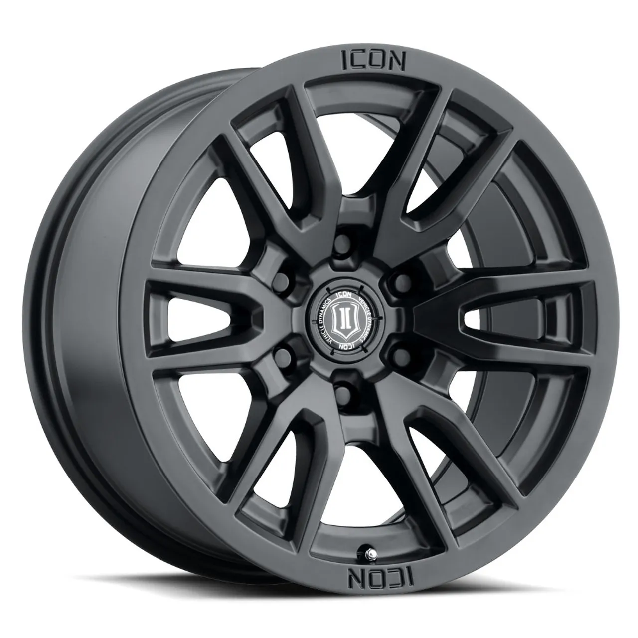 Bring a bold new look to your ride with the all-new ICON Alloys VECTOR 6! Combining sharp lines, a concave spoke design, and "ICON-optimized" dimensions, these wheels will increase both the form and function of your Jeep, truck, or SUV. Staying true to the ICON Alloys approach, the VECTOR 6 has been engineered to maximize caliper clearance and optimize wheel position for un-hindered suspension travel and steering function. Backspace dimensions and wheel offset have been strategically developed to reduce scrub radius, improving all-around handling and ride quality and making a set of these wheels the perfect complement to an ICON Vehicle Dynamics suspension system.