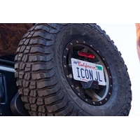 Just about every high clearance off-road bumper available for the Jeep Wrangler JL forces a relocation of the license plate. The JL License Plate Relocation Kit from ICON Impact accomplishes this task and so much more. This single kit solves three common issues as it also relocates the factory third brake light to the center of the spare tire, and provides mounting provisions for the factory backup camera. Both the third brake light and backup camera are left homeless when installing any aftermarket bumper and tire carrier that eliminates the factory spare tire carrier. This kit is the perfect companion for ICON's JL PRO Series Body Mounted Tire Carrier, or for anyone who wants to relocate the license plate and third brake light while retaining the factory backup camera. When the spare tire is needed, the entire assembly is quickly detached with the removal of two bolts and unplugging the wire harness. All components are CNC laser cut and brake formed sheet metal, powder coated in a semi-gloss black finish.
