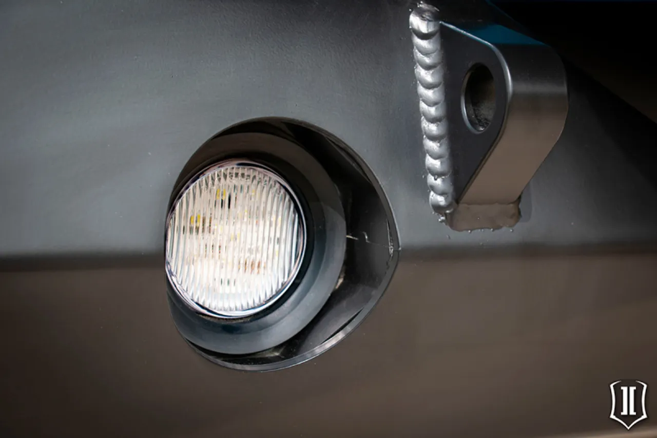 2.5" flush mount LED back-up lights for use with ICON Impact PRO Series 2 rear bumpers or anywhere you can cut a 2.75 diameter hole in a flat sheet metal panel. Push-in mounting with the included rubber grommet provides durable mount and makes install and removal a breeze. Sold by the pair and includes wiring harnesses.