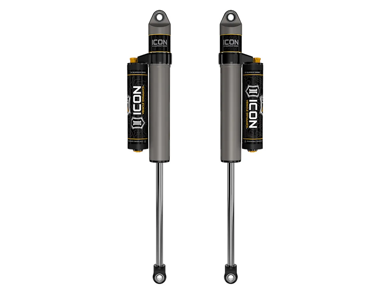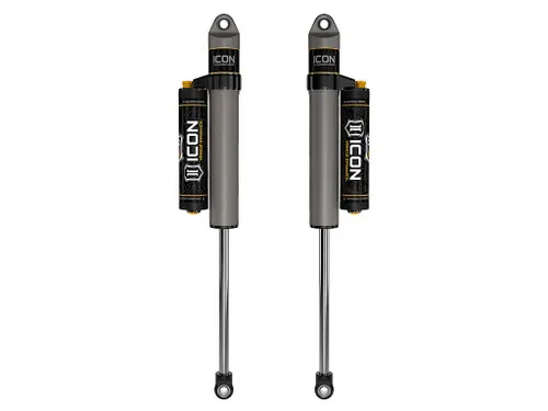 ICON Vehicle Specific (V.S.) 2.5 Aluminum Series shocks are designed and built to give your vehicle outstanding performance off-road and a smooth ride on the street. These shocks are configured specifically for each application in both length and damping tune. Like all ICON'S Shock Absorbers, V.S. 2.5 Aluminum Series shocks are 100% rebuildable and 100% revalveable. For piggyback and specific remote reservoir applications, ICON'S unique use of a 6061 billet aluminum manifold a few inches below the top cap of the shock creates an internal Bump Zone that when used creates an additional 20% of damping force. This additional force helps prevent harsh bottom outs and controls the suspension when compressing at high velocity. The ICON CDC Valve is an externally adjustable valve that restricts oil flow into the reservoir which creates 10 levels of compression damping force ranges.
