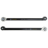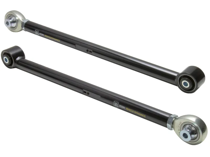 ICONs tubular steel rear lower link arms are a significant upgrade over the factory units due to increases in strength, adjustability, and performance. These components are made from CNC machined and notched 1026 DOM steel and welded in-house, providing a major improvement over the construction of the stock units. This rear lower link arm kit features PTFE-lined FK rod ends for increased suspension articulation, reduced deflection, and link arm length adjustability and also utilize a multi durometer bushing that allows for noise free operation and maximum angularity without the need for periodic greasing and/or other maintenance. The quality rod ends and bushings featured in these link arms allow the vehicles suspension to function as intended, without the bushing bind that limits the vehicle in stock form. ICONs engineering team has also gone a step further in the development of these products by incorporating features such as a tangent lower link barrel design that allows for easier sliding over off-road obstacles, and offsetting the front pivots of the lower link for improved roll steer geometry. After the design phase was completed ICON engineers put these parts through the ICON1K real-world test cycle for a final stamp of approval.