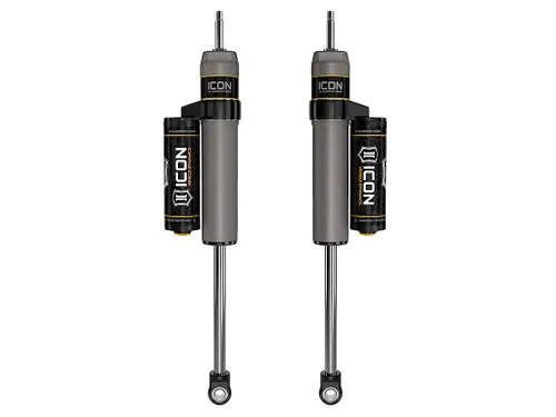 ICON Vehicle Specific (V.S.) 2.5 Aluminum Series shocks are designed and built to give your vehicle outstanding performance off-road and a smooth ride on the street. These shocks are configured specifically for each application in both length and damping tune. Like all ICON'S Shock Absorbers, V.S. 2.5 Aluminum Series shocks are 100% rebuildable and 100% revalveable. For piggyback and specific remote reservoir applications, ICON'S unique use of a 6061 billet aluminum manifold a few inches below the top cap of the shock creates an internal Bump Zone that when used creates an additional 20% of damping force. This additional force helps prevent harsh bottom outs and controls the suspension when compressing at high velocity. If you are looking for a more user defined tune, consider looking into the Compression Damping Control Valve (CDCV) or the Omega Series bypass shocks.