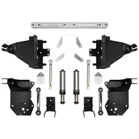 The ICON Raptor Bump Stop System includes heavy duty steel clamshell brackets, a billet aluminum frame crossmember, adjustable tension rods, hydraulic bump stops, and all of the necessary hardware required to complete the installation. The clamshell brackets, crossmember, and tension rods add strength to the frame to prevent damage during extreme off-road use while increasing chassis rigidity for predictable handling and improved vehicle dynamics. The 2.5 travel hydraulic bumpstops feature velocity sensitive technology which means that as the shaft speed increases the damping ability ramps up, resulting in exponential bottoming resistance that wont negatively affect articulation. Combining all of these components into an easy to install, bolt-on package, ICON has developed the most comprehensive rear bump stop solution on the market for Raptor owners seeking the next level of strength and performance.